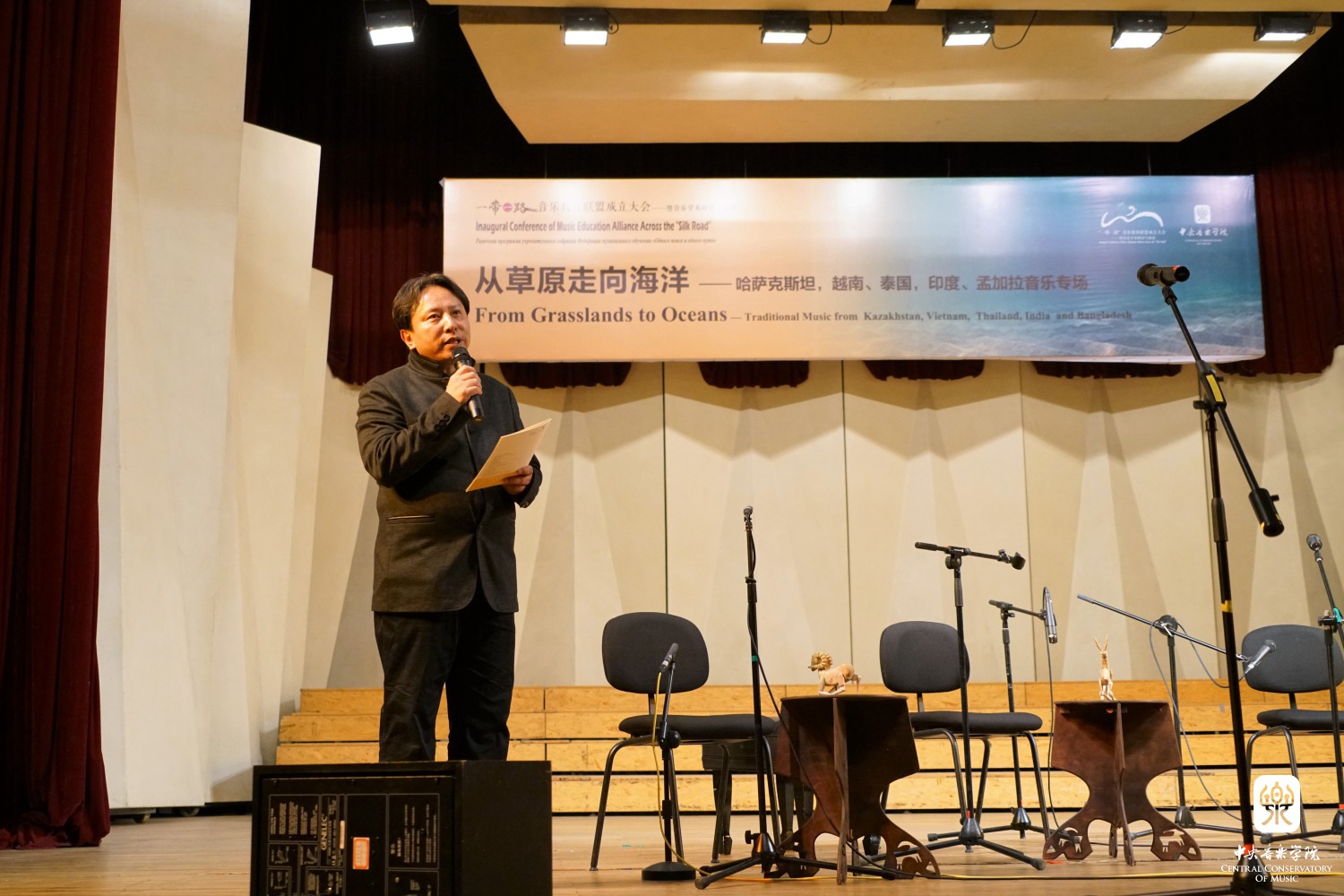 2017年5月7日晚,从草原走向海洋——哈萨克斯坦、越南、泰国、印度、泰国、孟加拉国专场音乐会在星空彩票ios版中心版音乐厅举行。这是“一带一路"音乐教育联盟成立大会——暨音乐学术研讨与展演活动中最精华的音乐会之一。音乐会由星空彩票ios版中心版音乐学系主任安平教授主持。参加一带一路音乐教育联盟成立大会的各国音乐学院院长及学者音乐家,星空彩票ios版中心版的师生及各界人士坐满了音乐厅。