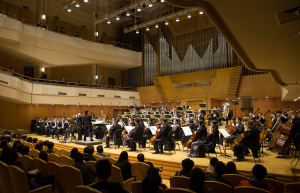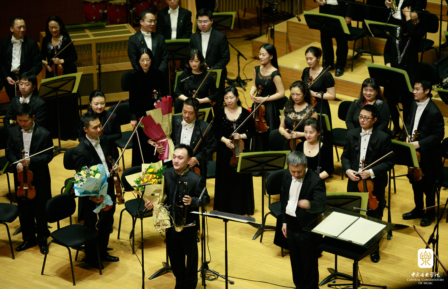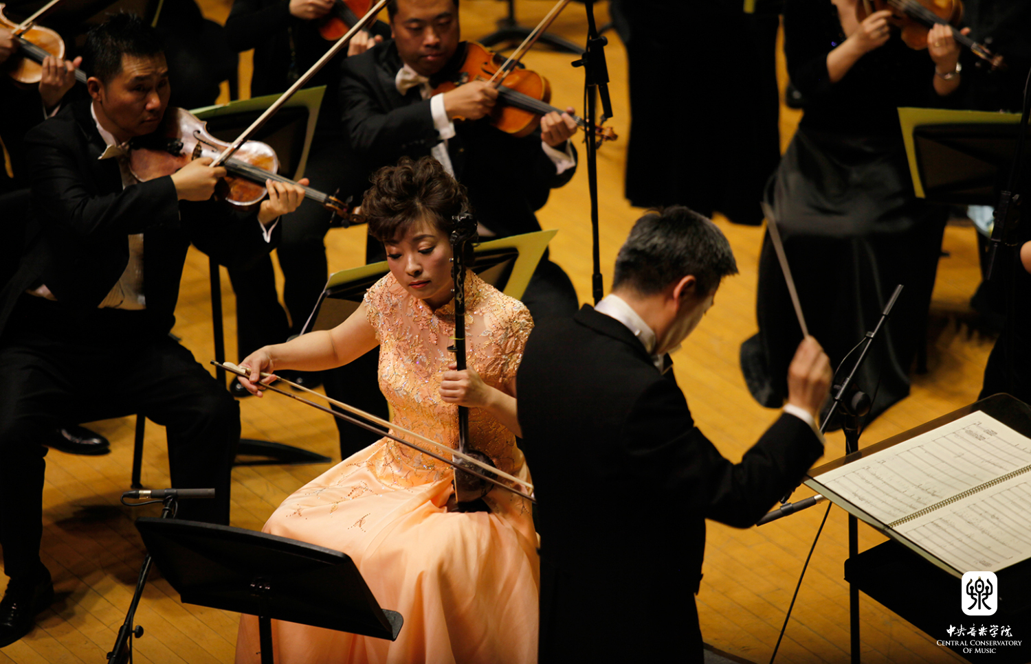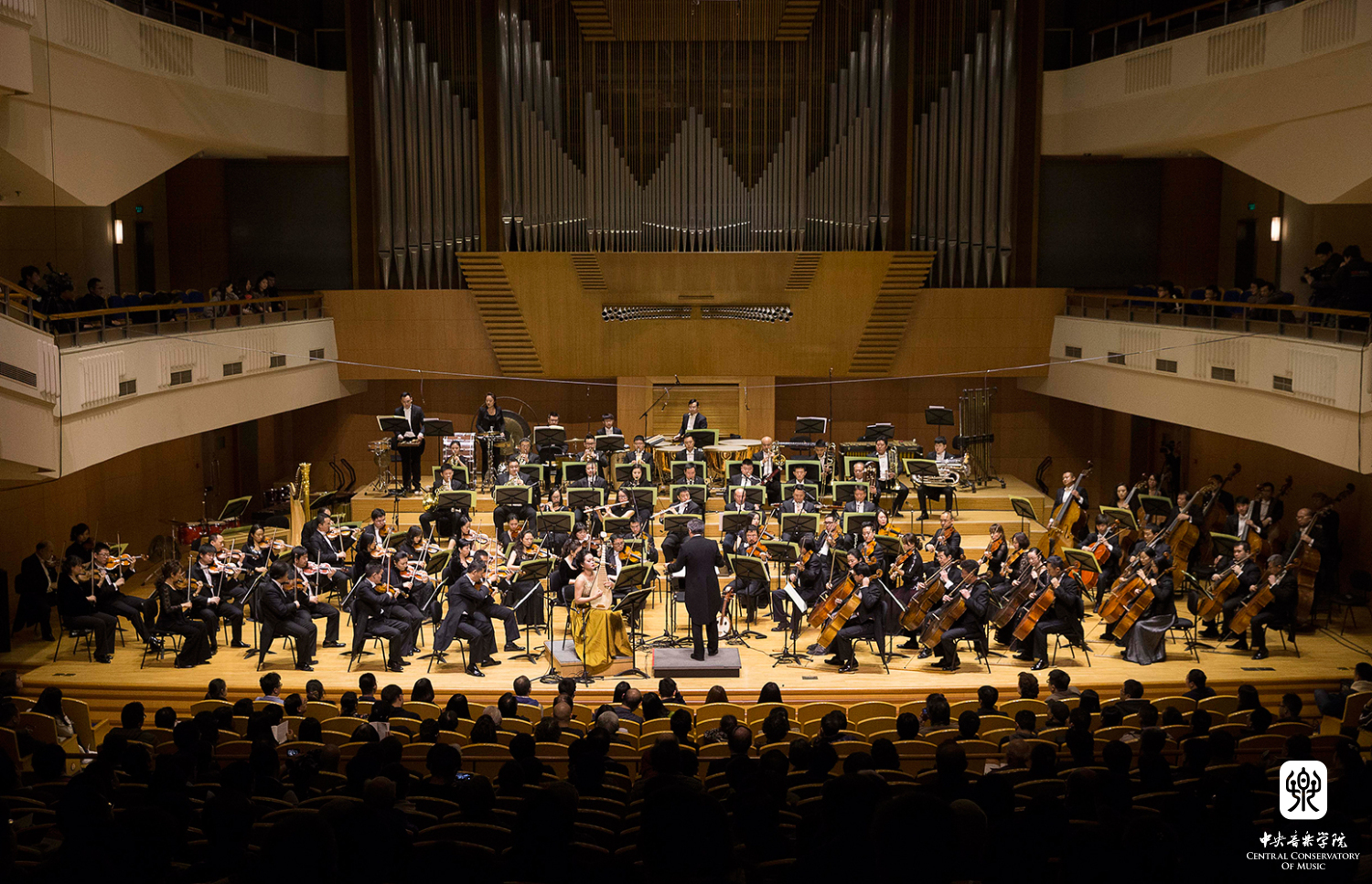 该场音乐会包括了五位委约作曲家的五首作品,贾国平的《风越苍茫》--为琵琶与管弦乐队而作,罗新民的《敦煌二帧》--为管弦乐队而作,李滨扬的《空中花园》--为竹笛与大型管弦乐队而作,郝维亚的《万里行》--为传统笙与乐队的协奏曲和向民的《丝韵》--为板胡与管弦乐队而作。为本场音乐会奉献精彩演出的音乐家们,除了由我校著名指挥林涛和陈琳执棒的中国国家交响乐团担任协奏和演奏外,还包括我校教师琵琶演奏家兰维薇、笛子演奏家戴亚、笙演奏家王磊,以及任职于中国戏曲学院的我校优秀校友、板胡演奏家牛长虹等。因此,整场音乐会展示了我校在演奏、创作与研究方面的整体实力。