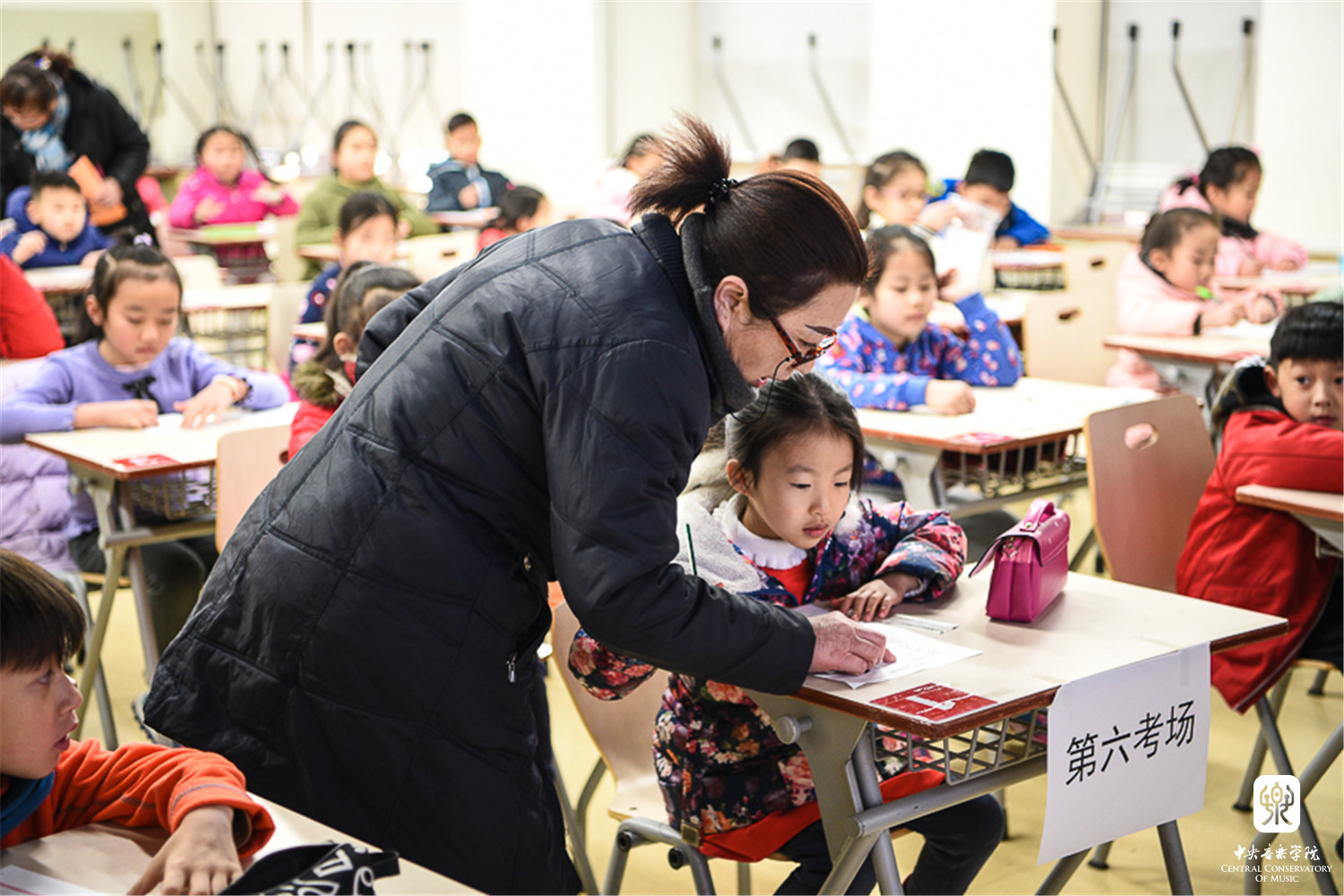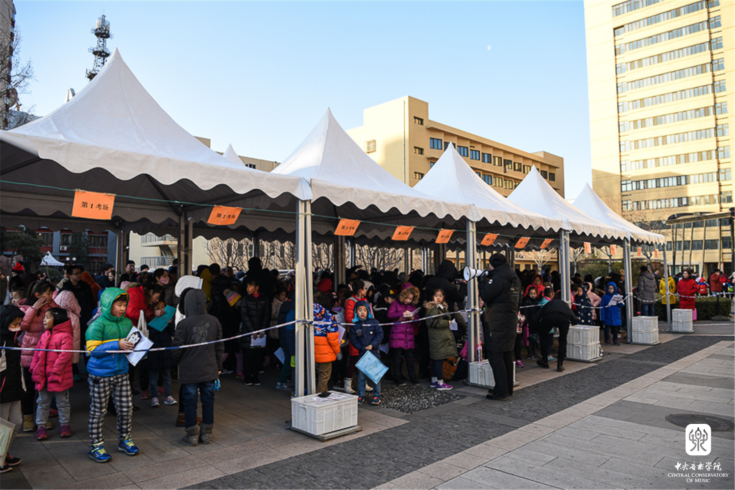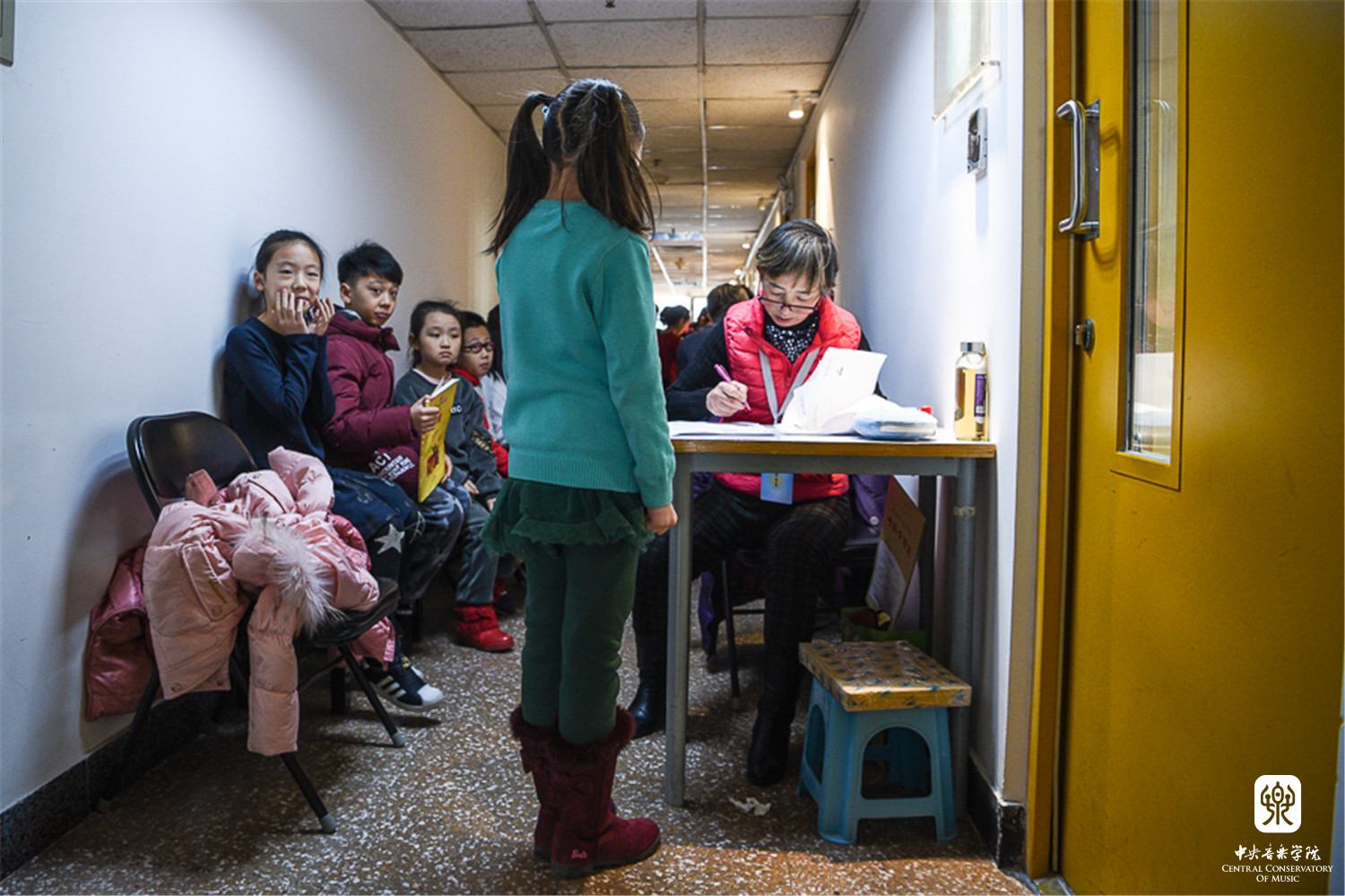 连续多日的低温和大风天气,考虑到考生年龄小、手指僵硬不利于乐器弹奏等因素,考级委员会特别开放琴房楼演奏厅、友谊厅,作为考生候考中转站,每层考场旁边设有琴房和教室为考生提供温暖舒适的候考环境。