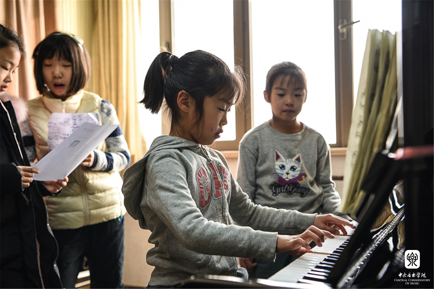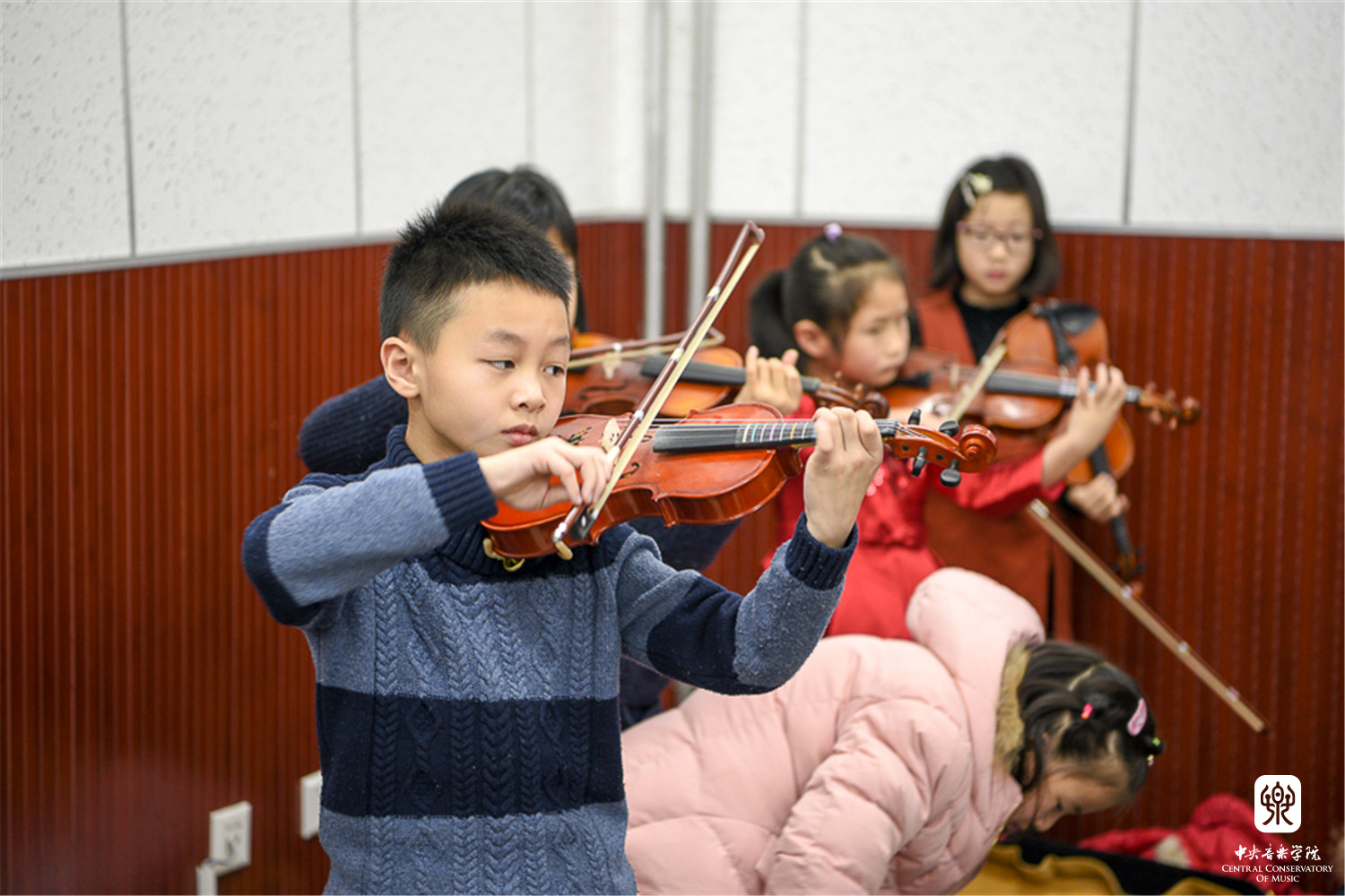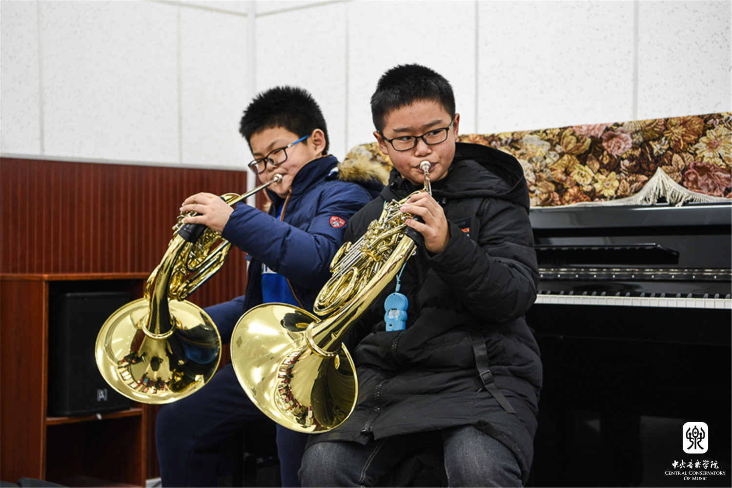 连续多日的低温和大风天气,考虑到考生年龄小、手指僵硬不利于乐器弹奏等因素,考级委员会特别开放琴房楼演奏厅、友谊厅,作为考生候考中转站,每层考场旁边设有琴房和教室为考生提供温暖舒适的候考环境。