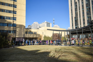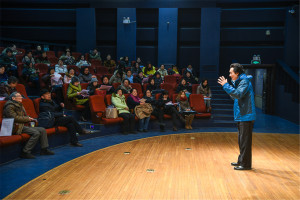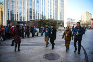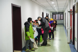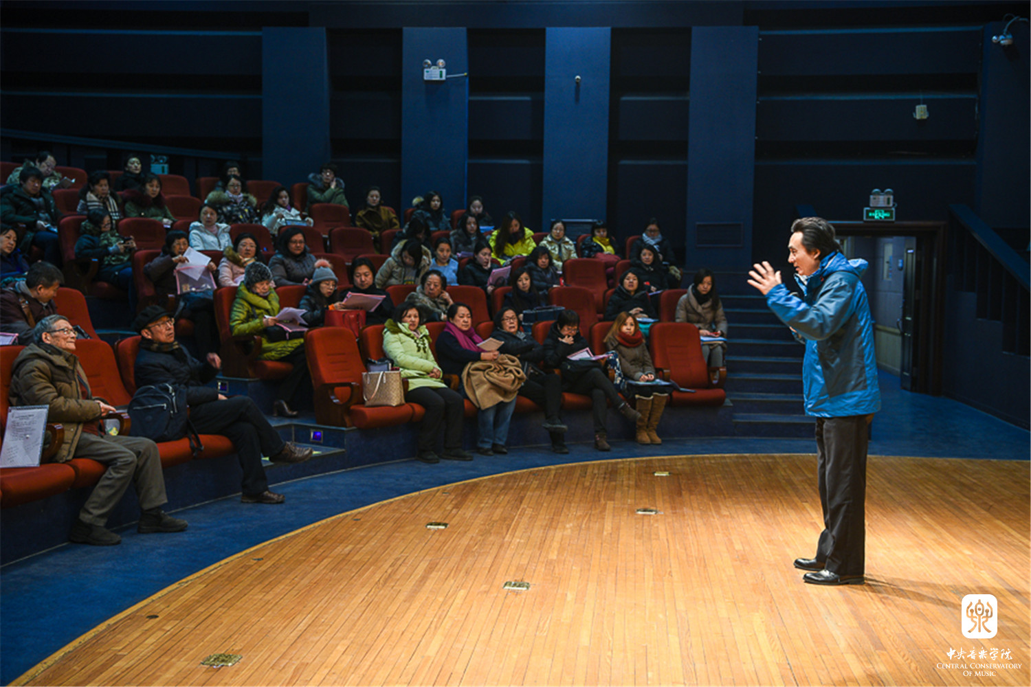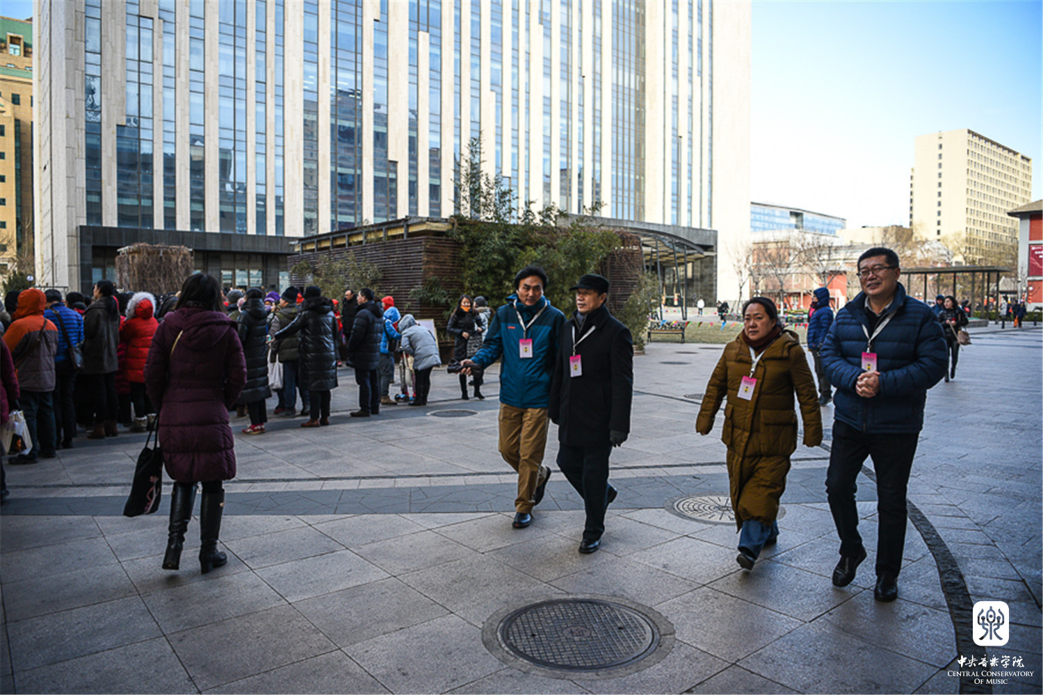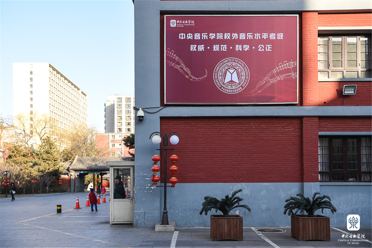由于学院场地有限、天气寒冷等因素,考级委员会为等候考生的家长打开教学楼大厅及办公楼楼道作为休息御寒场所。