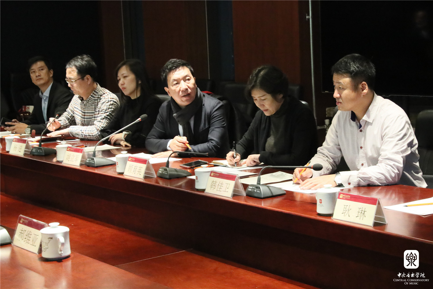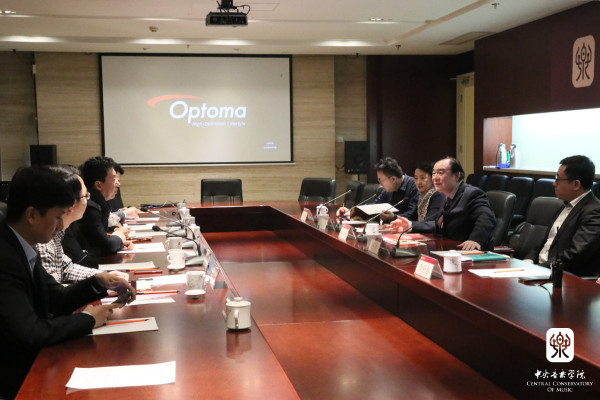 院长办公室主任赵海、“一带一路”音乐教育联盟秘书处秘书长张伯瑜、校资产经营公司董事长孔聪、演出实践管理中心主任李应泰、作曲系作曲教研室主任郝维亚参加了会见,会后姚立军主任一行参观了我院教学场地和设施。