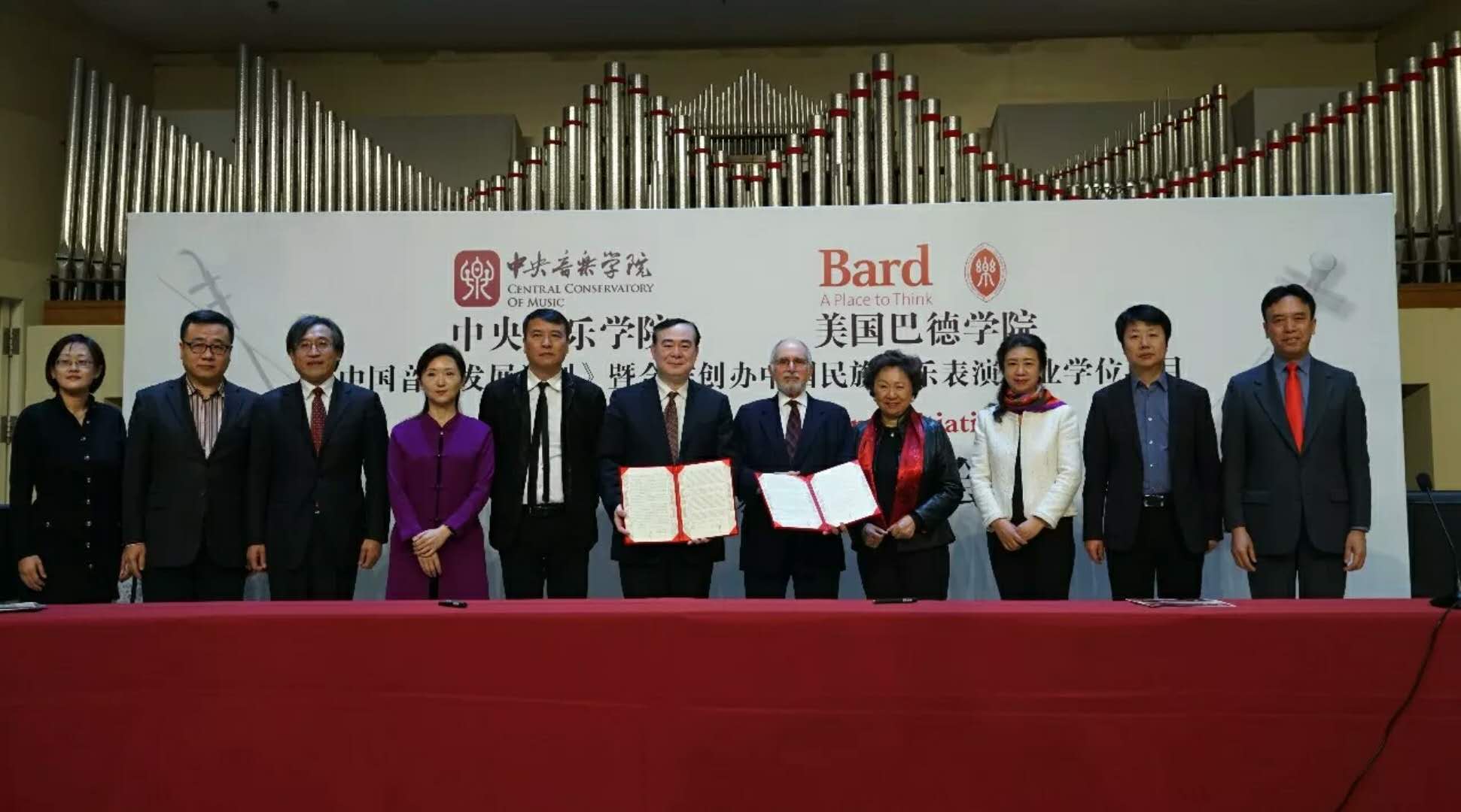 2017年12月3日,我校与美国巴德音乐学院签署了《中国音乐发展计划》暨合作创办中国民族器乐表演专业学位项目,在巴德音乐学院现有的5年制双专业本科机制中设立中国民族器乐表演专业学位(二胡、琵琶和古筝)。