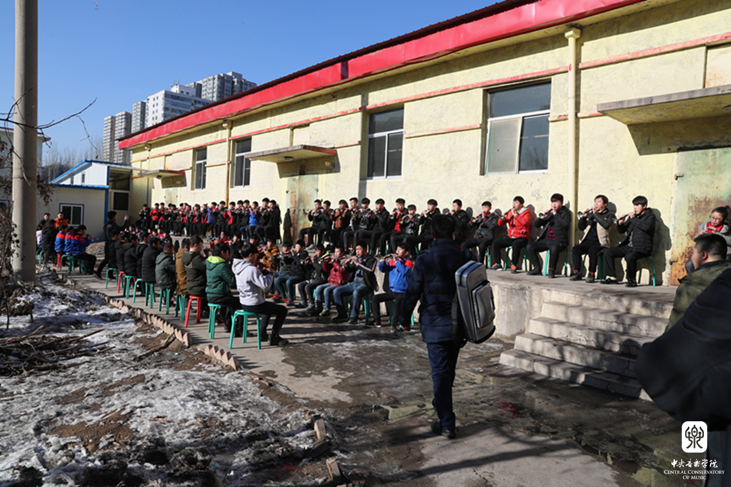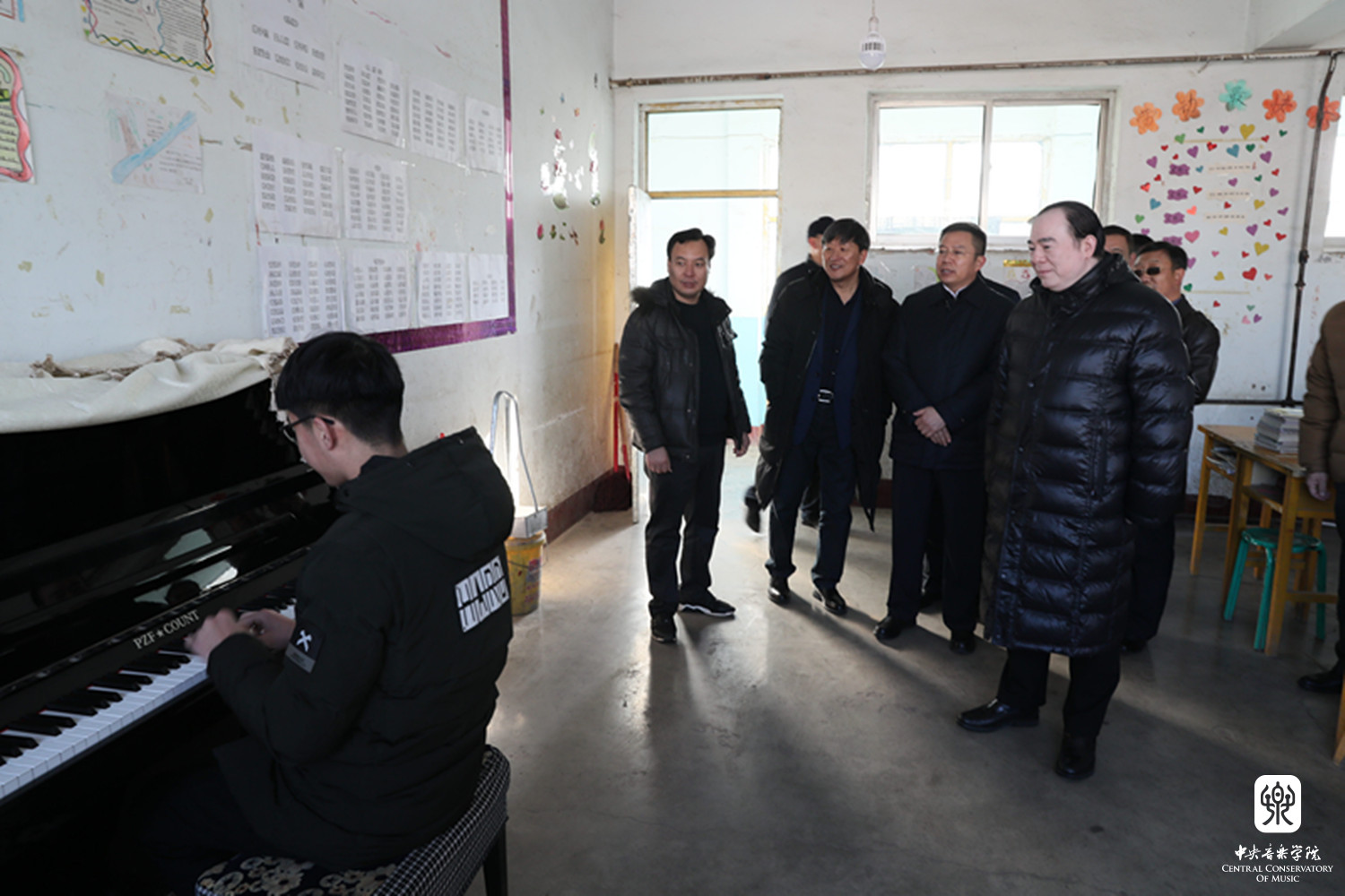 签约仪式前,俞峰院长一行走访了吕梁市艺术学校,实地了解师生教学情况,看到艺校的同学们,特别是唢呐专业的100多名学生冒着严寒,在室外练习,民乐小乐队的排练,看到同学们在如此艰苦的条件下,依然那么执着、求知若渴的学习劲头,演奏着韵味十足的晋剧音乐,俞峰院长和随行的老师们深受感动,俞峰院长勉励同学们好好学习,告诉大家,近两年已经有几位同学分别考上了星空彩票ios版中心版的本科和研究生,星空彩票ios版中心版展开双臂欢迎大家!希望他们以这些山西籍的老师、学长为榜样,通过刻苦的学习,能有更多的同学考入音乐院校,学得一技之长,建设家乡!