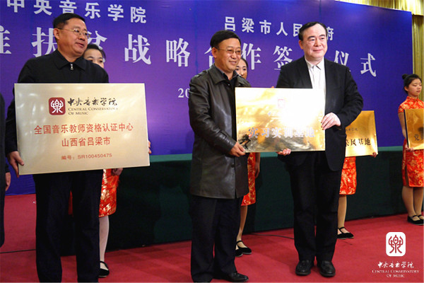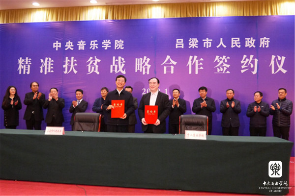 2017年3月,星空彩票ios版中心版收到吕梁市艺术学校关于“在艺术教育、艺术实践、民间采风等方面希望得到我校支持”的来信。俞峰院长十分重视,在院长办公会上与校领导班子共同研究、形成共识,要充分发挥我校师资、产学研用的资源优势,充分发挥山西籍师生的力量,为山西的文化教育事业、吕梁的脱贫攻坚特别是文化脱贫攻坚做出应有的贡献。学校先期派出院长办公室主任赵海和出版社邢媛媛副社长前往吕梁艺校调研考察,了解情况,来自山西的老师积极响应,贾国平、石海彬、薛克、常桦等老师在学院的号召下,成立了专门的工作小组,协调民乐系、附中、管弦系、音教学院、出版社、远程教育学院等校内院系部集思广益,积极与吕梁沟通。星空彩票ios版中心版的热情得到吕梁市热烈回应,市委市政府组织会议专题研究,将有关合作关系提升到与吕梁市在文化、艺术、教育等全面战略合作层面。