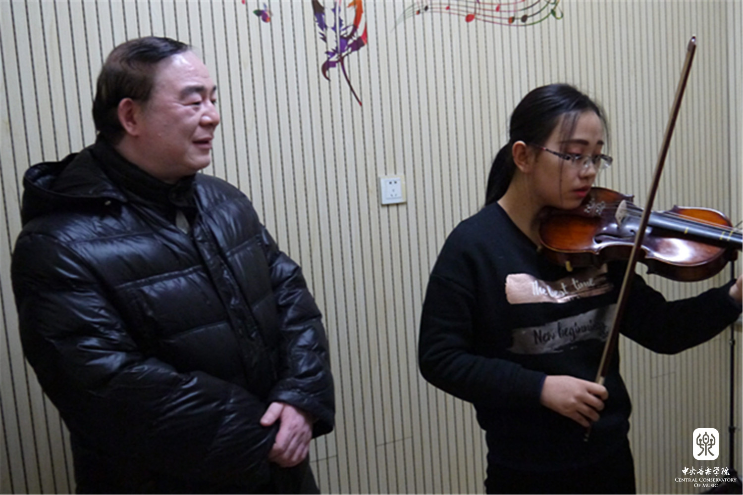 石海彬和陈光教授还带着乐器到吕梁市艺术学校为可爱的学生们上了两节生动的专业课。通过悉心指导,让学生们能切身感受到技术的进步对音乐表现力的直接影响。课后,学生们都激动万分、深感获益匪浅,他们表示从没想过能如此近距离接触这样优秀的一流教师,接受他们的精心指导。相信这将会在他们心中埋下一颗热爱音乐、追求美好的种子,大大激发他们奋发向上的学习追求及动力。
