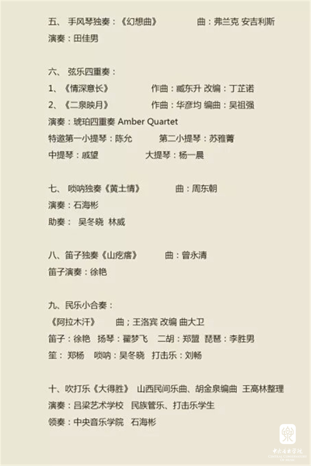 《号手的节日》《康康舞曲》《吕梁民歌主题变奏》