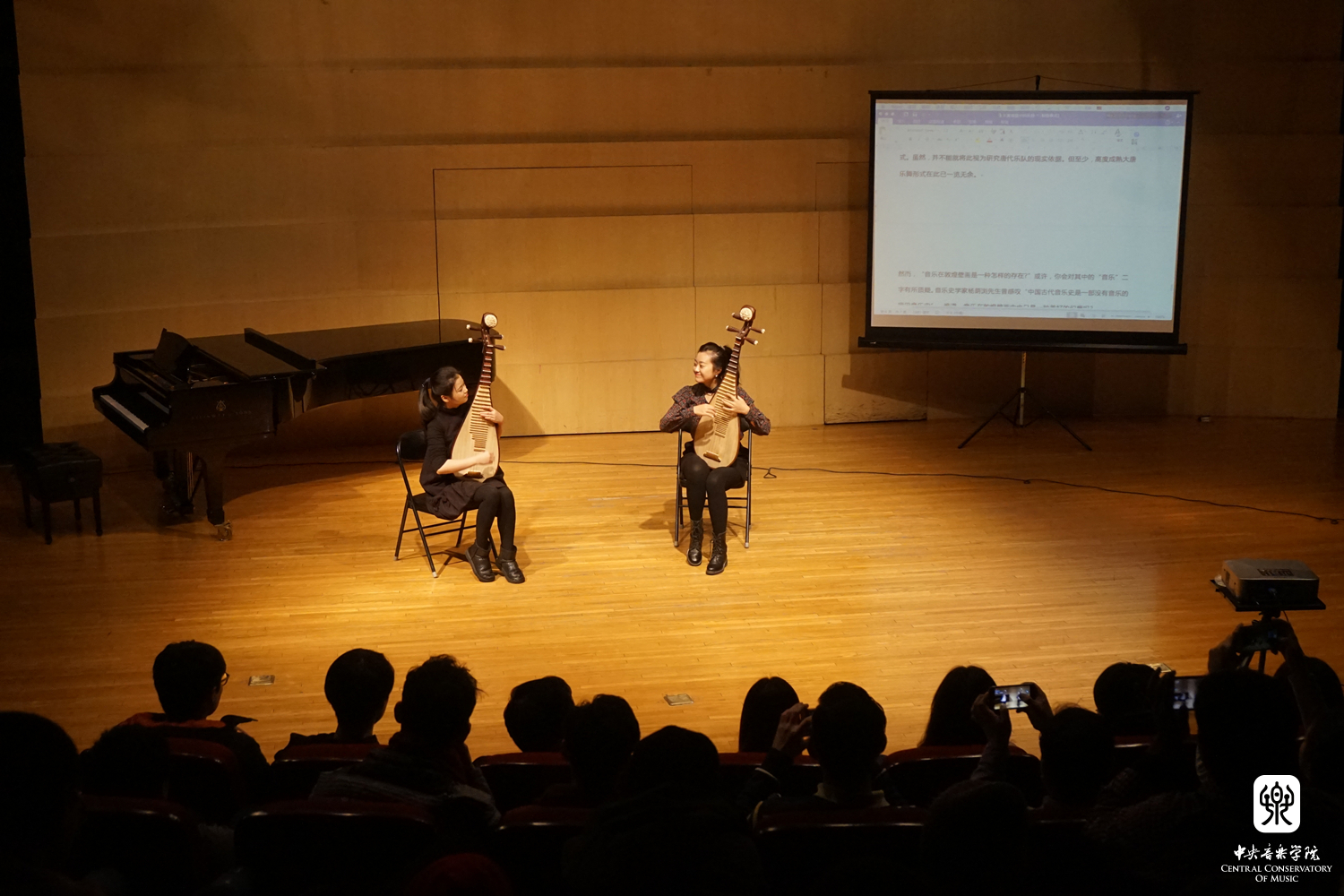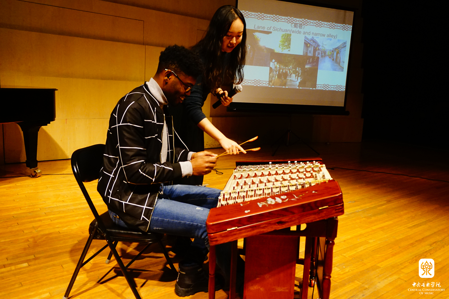 2017年12月29日,由我校中外音乐文化交流与体验基地及音乐孔子学院办公室面向校内本科生及研究生开设的学分选修课《国际音乐教育与传播》,在演奏厅举行了课程修毕音乐工作坊。选修课的同学们用中英双语与来自北航国际学院的留学生们分享了各自专业的发展史,并进行演奏展示,与观众互动交流,外国学生们对同学们的演奏和讲解产生了浓厚兴趣,纷纷表示:希望今后能有更多的机会来到星空彩票ios版中心版学习中国音乐,了解中国文化。工作坊结束后,北航留学生们还参观了我校中国乐器陈列室“一带一路”主题乐器展,增进对中国音乐文化的感性体验。