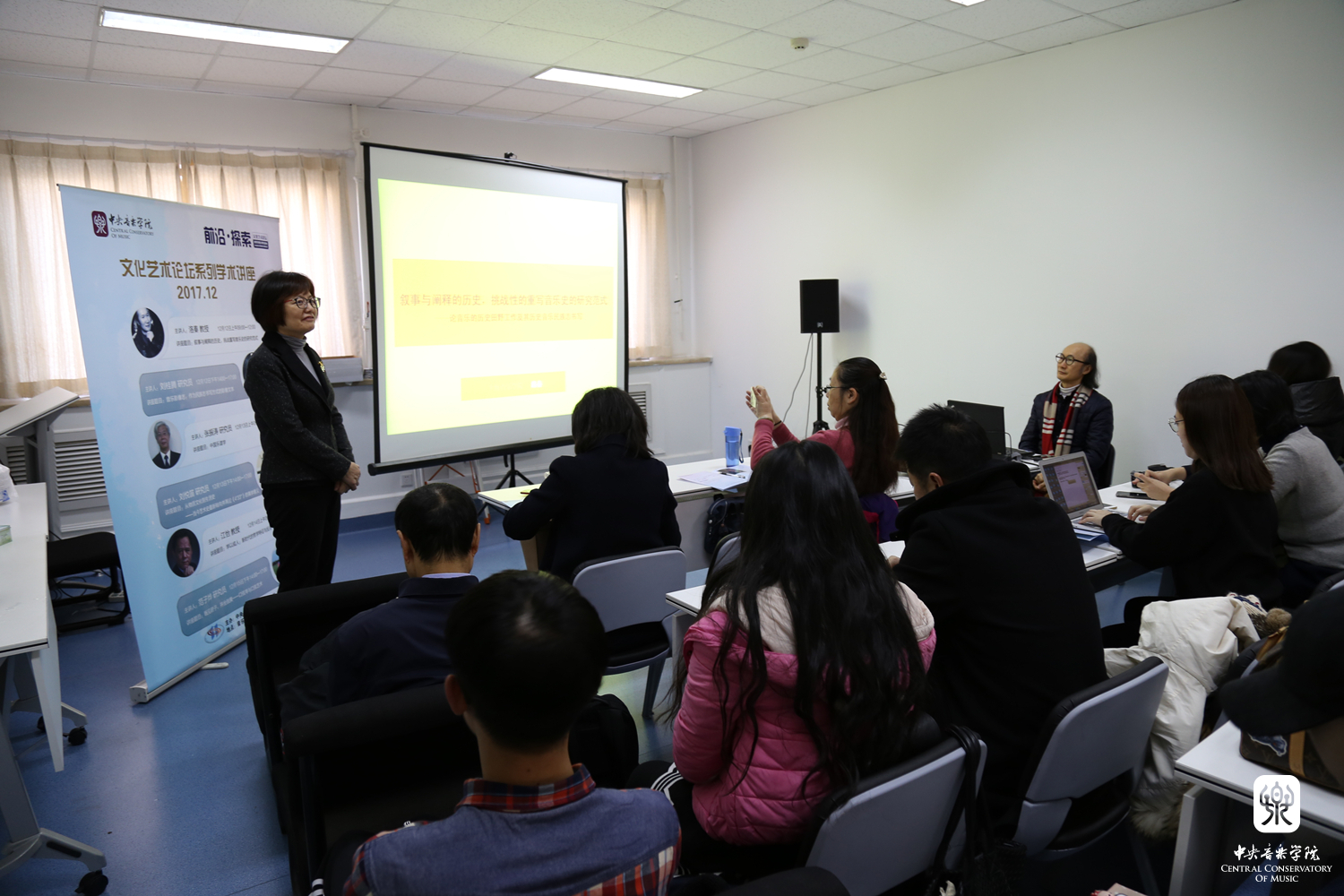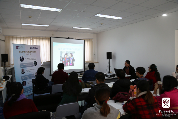 2017年12月12日至15日,由音乐学研究所主办的“前沿•探索”文化艺术论坛系列学术讲座在音乐学研究所会议室举行。本次文化艺术论坛由6场讲座组成,担任主讲的受邀专家学者分别是:上海音乐学院洛秦教授、上海音乐学院“生态音乐学团队”特聘专家刘桂腾研究员、中国艺术研究院音乐研究所张振涛研究员、中国社会科学院哲学所刘悦笛研究员、北京师范大学江怡教授,以及中国社会科学院文学研究所范子烨研究员。音乐学研究所所长贾国平教授、副所长宋瑾教授、副所长汤琼教授和音乐学系主任安平教授分别担任了相关场次讲座的主持人。音乐学研究所全体在站博士后、在所访问学者,以及院内外诸多专家学者、博士生、硕士生等参加了此次文化艺术论坛系列讲座活动。
