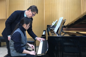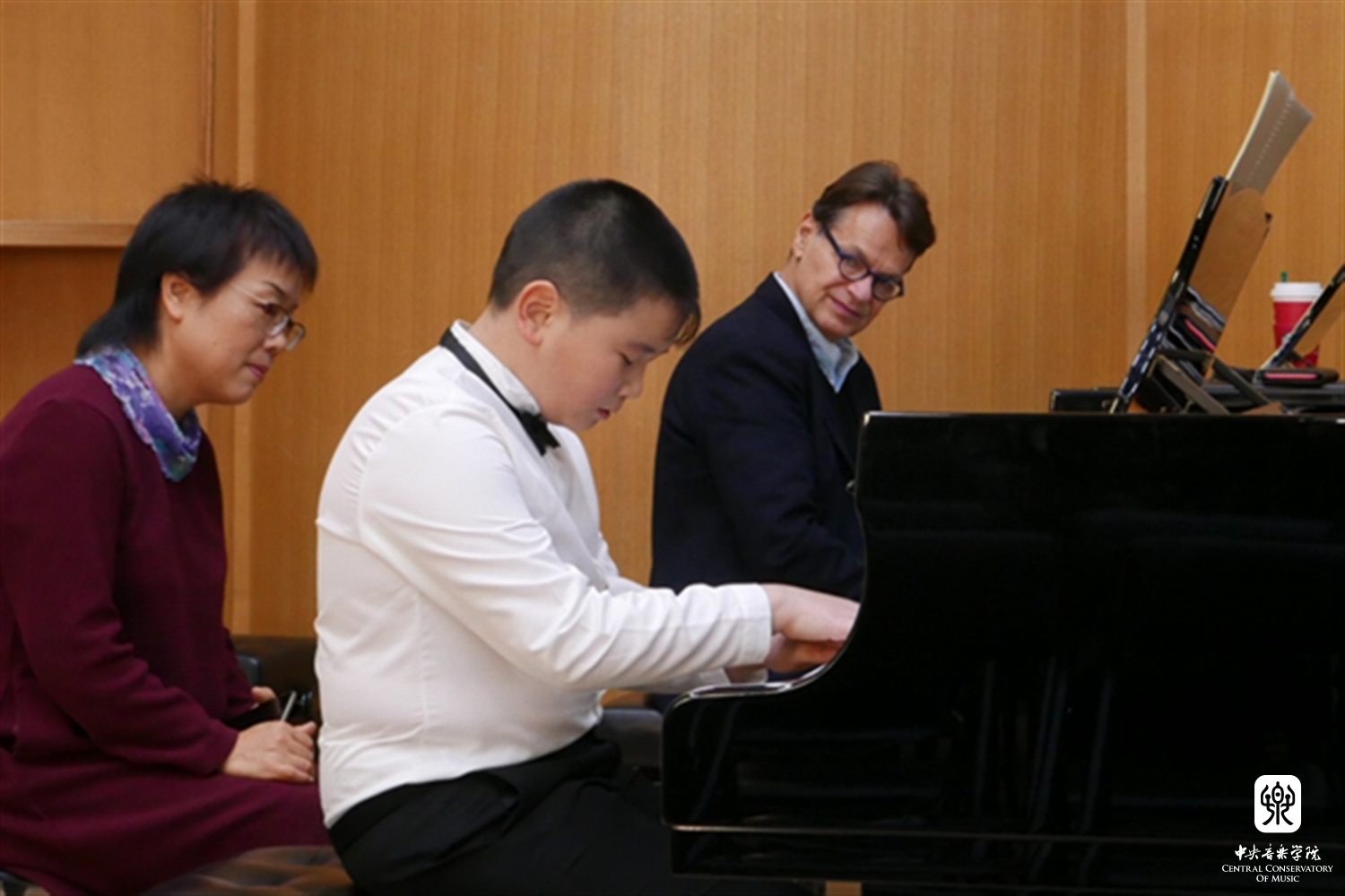 2017年12月11日-15日, Michel Beroff来到星空彩票ios版中心版附中举行了为期五天的大师课。在13日下午的公开课中为附中三位同学钱雨禾、许琛、陈学弘进行指导。Beroff教授首先对三位学生的演奏表示认可,随后帮助学生进行了更加细致的调整。