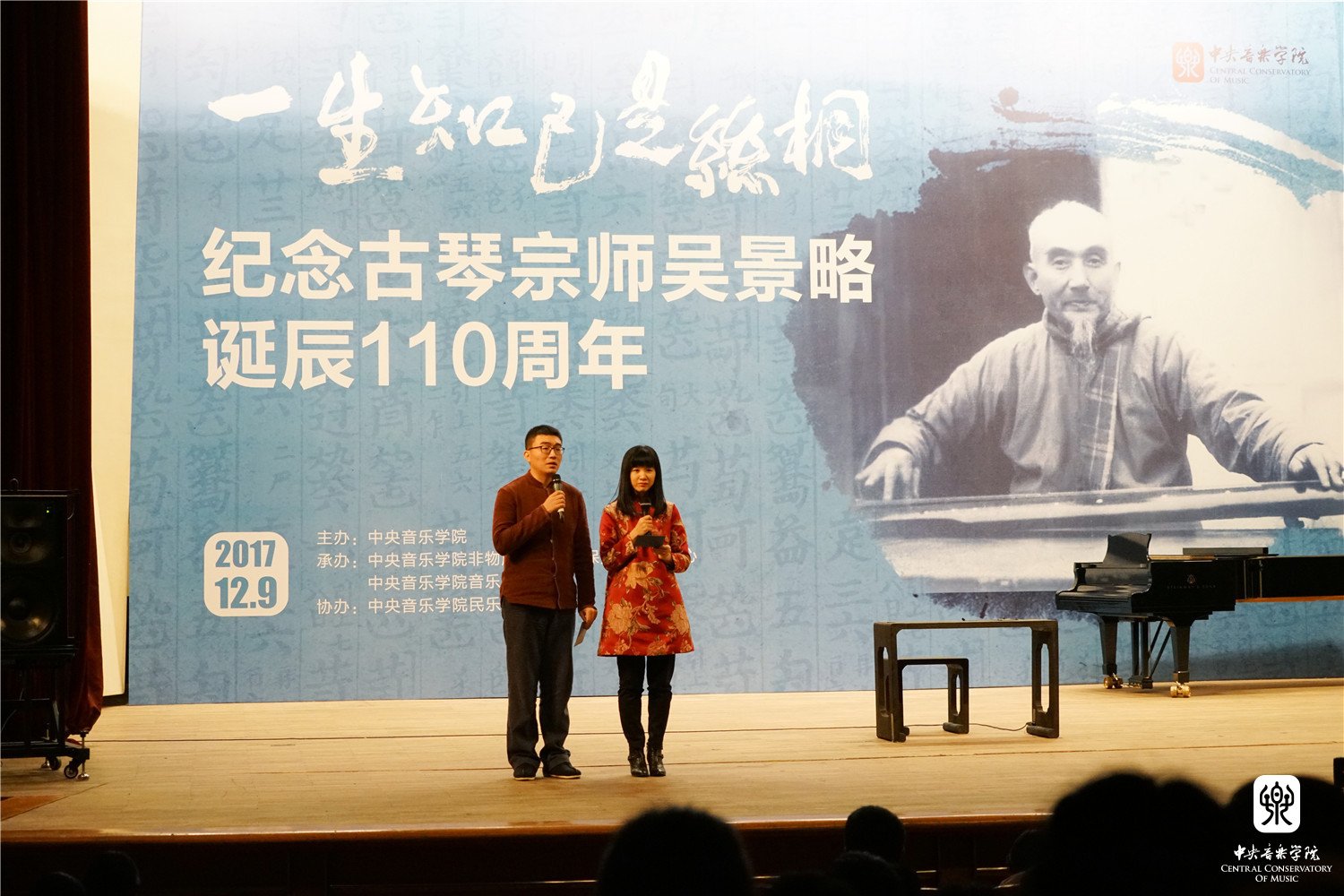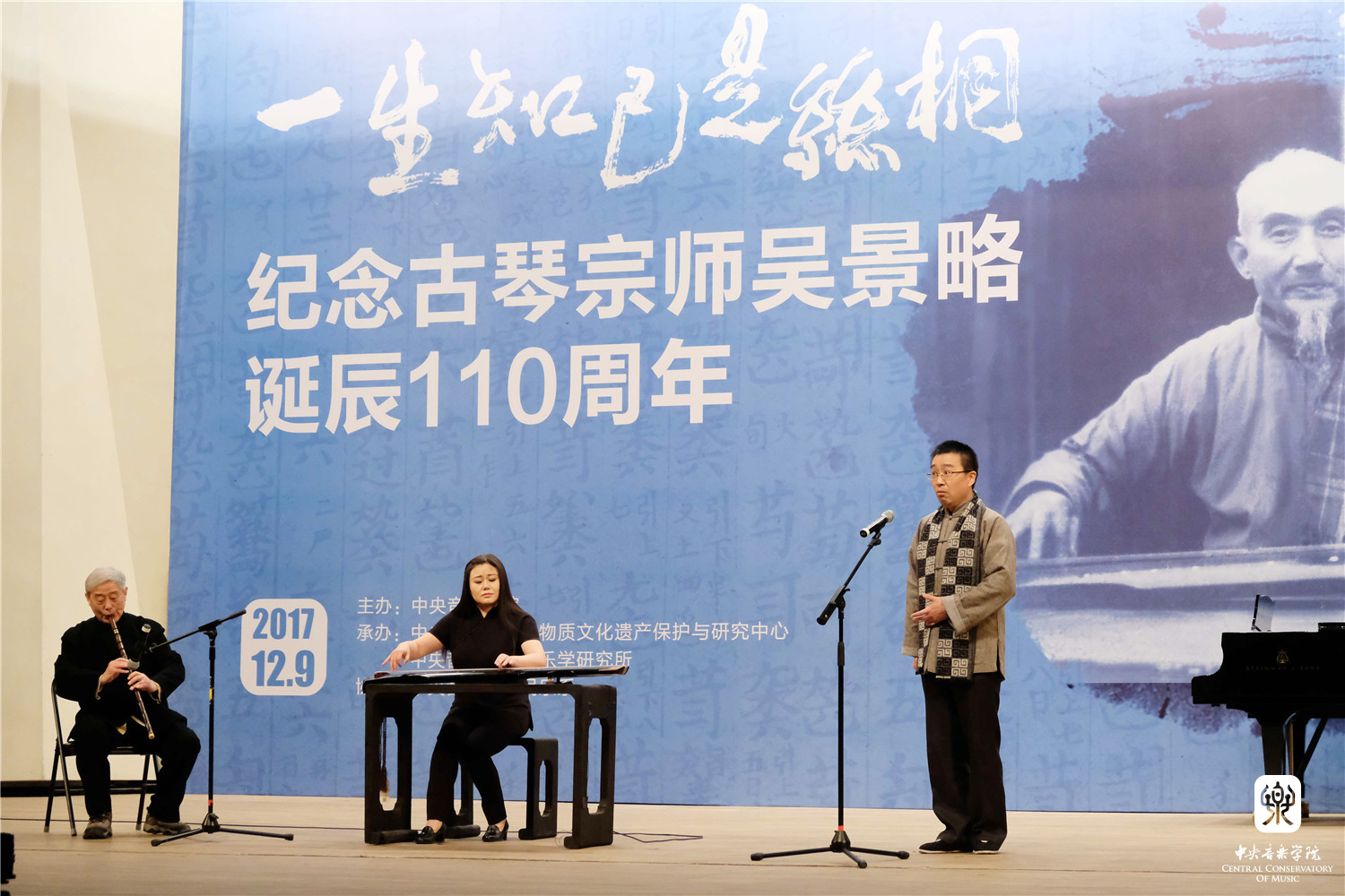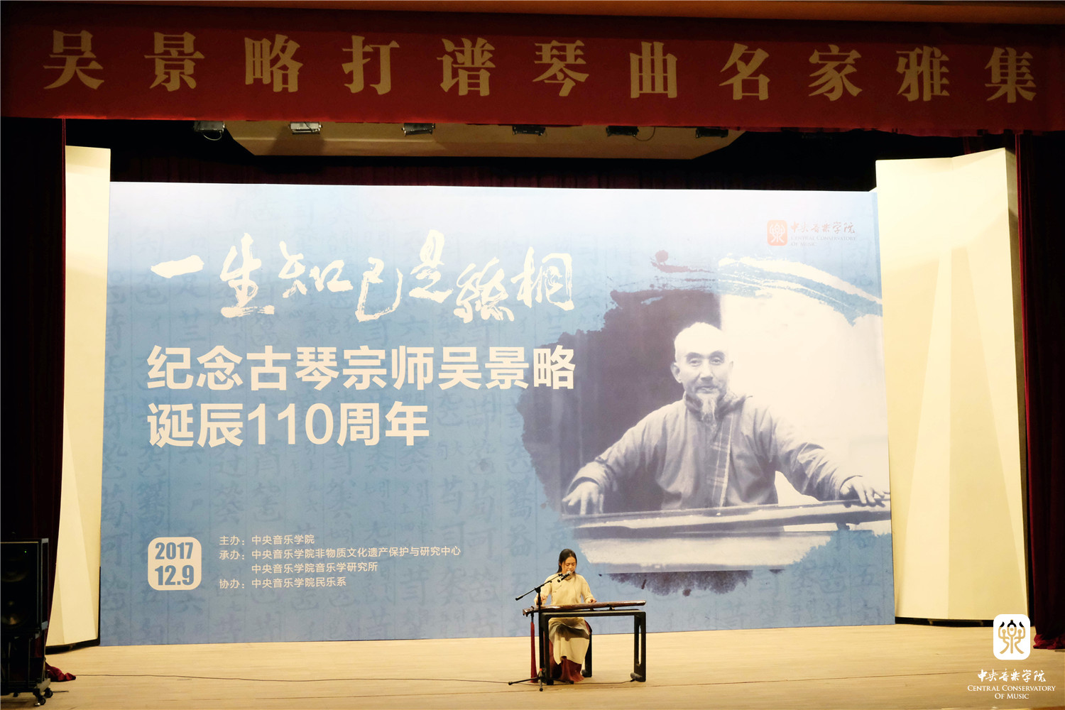2017年12月9日,星空彩票ios版中心版举行了“一生知己是丝桐——纪念古琴宗师吴景略诞辰110周年”活动。本次活动是由星空彩票ios版中心版主办,学校非物质文化遗产保护与研究中心、音乐学研究所承办,民乐系协办。