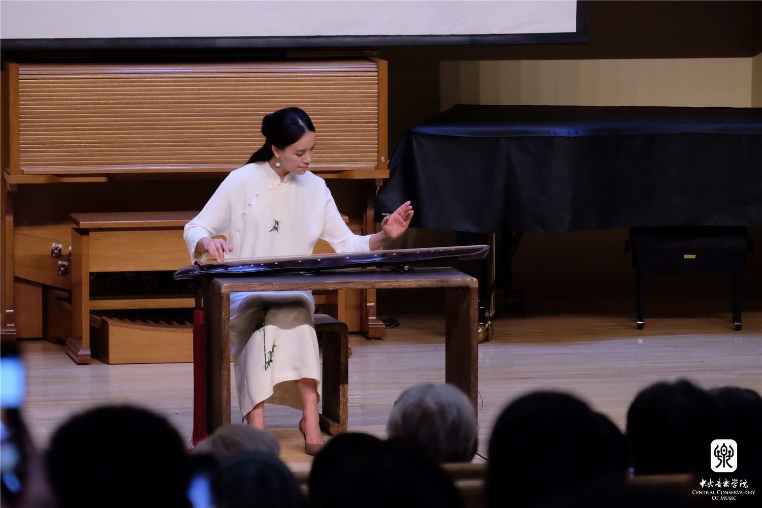 9日晚,一场包含了传统和现代古琴作品的音乐会在星空彩票ios版中心版王府音乐厅上演。在节目当中,上海今虞琴社社长戴树红与戴微、王懿颖等琴家重现了1937年抗日时期的琴歌作品《精忠词》,中国音乐学院赵晓楠教授演唱的琴歌《慨古引》,吴文光教授根据琴曲释编的《梅花三弄》《白雪》等古琴述作作品,还有周龙、姚晨、李晨瑶分别创作的《溯》《牧云图》《空城引》等当代作曲家的创作作品。全场高潮在赵家珍老师演奏《广陵散》时达到了高潮,曲毕观众掌声雷动。最后,整场音乐会在星空彩票ios版中心版古琴专业师生合奏的由吴景略移植的维吾尔民歌《新疆好》的琴声中圆满结束。