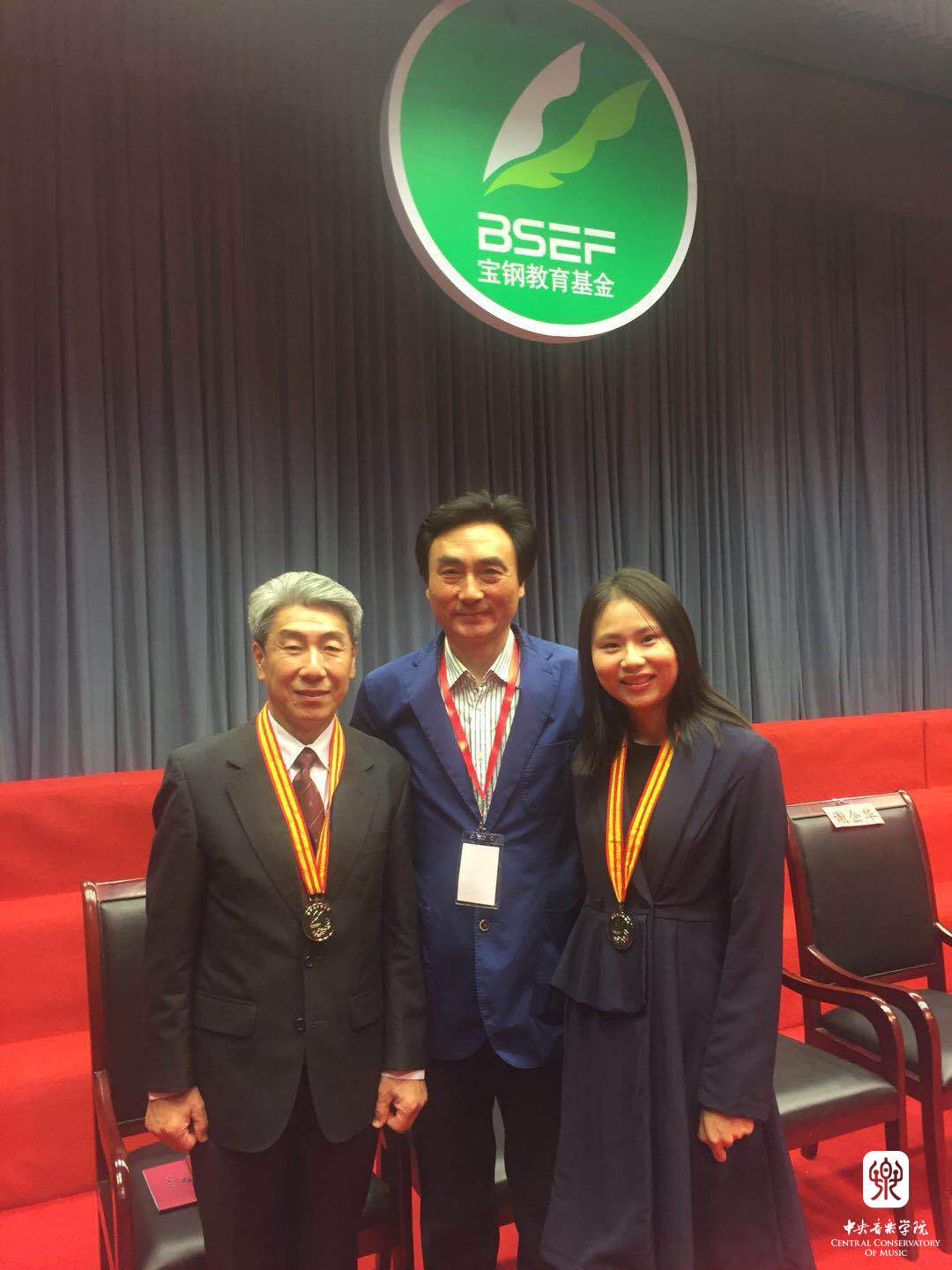 在刚刚落幕的2017年度宝钢教育奖评审会议中,我院民乐系王建华教授、指挥系副主任陈琳教授,指挥系2016级硕士生李京展、钢琴系手风琴专业2014级本科生毛俊澔、作曲系2013级本科生胡祉璇同学荣获"宝钢教育基金会优秀教师奖、优秀学生奖"。我院党委副书记逄焕磊,获奖教师代表王建华教授、获奖学生代表胡祉璇同学出席评颁活动,组委会还组织获奖师生参观了以"钢铁是怎样炼成的"为主题的宝钢生产现场及陈毅广场,师生们获益匪浅。
