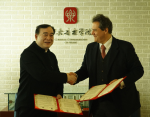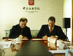 2017年11月14日上午,意大利罗马圣切契利亚音乐学院院长Giuliani Roberto教授与星空彩票ios版中心版院长俞峰教授于第一会议室举行了校际交流合作协议续签仪式。出席仪式的还包括意大利罗马圣切契利亚音乐学院副院长Ciampi Marizio教授、声乐歌剧系主任张立萍教授、研究生部主任柯扬老师、国际交流处副处长陶倩女士。