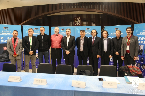 当日下午18时,在歌剧音乐厅的前厅,艺术节召开了短暂而热烈的媒体见面会。媒体见面会会由艺术总监曹晓青教授主持,学院叶小钢副院长、华沙肖邦音乐学院院长Klaudiusz Baran、华人作曲家、钢琴家储望华先生以及出演音乐会的六位国际手风琴艺术家出席,十余家国内主流媒体记者参会。曹晓青教授介绍了艺术节的举办宗旨和学术追求,并指出开幕式音乐会我院俞峰院长与Klaudiusz Baran院长首次联袂在我院建设"双一流"高校历程中的重要意义。叶小钢副院长褒扬了手风琴专业教学取得的卓越成绩,肯定了艺术节的学术亮点和学术意义。储望华先生及六位外国嘉宾依次发言,并亲切接受了媒体朋友们的单独采访。