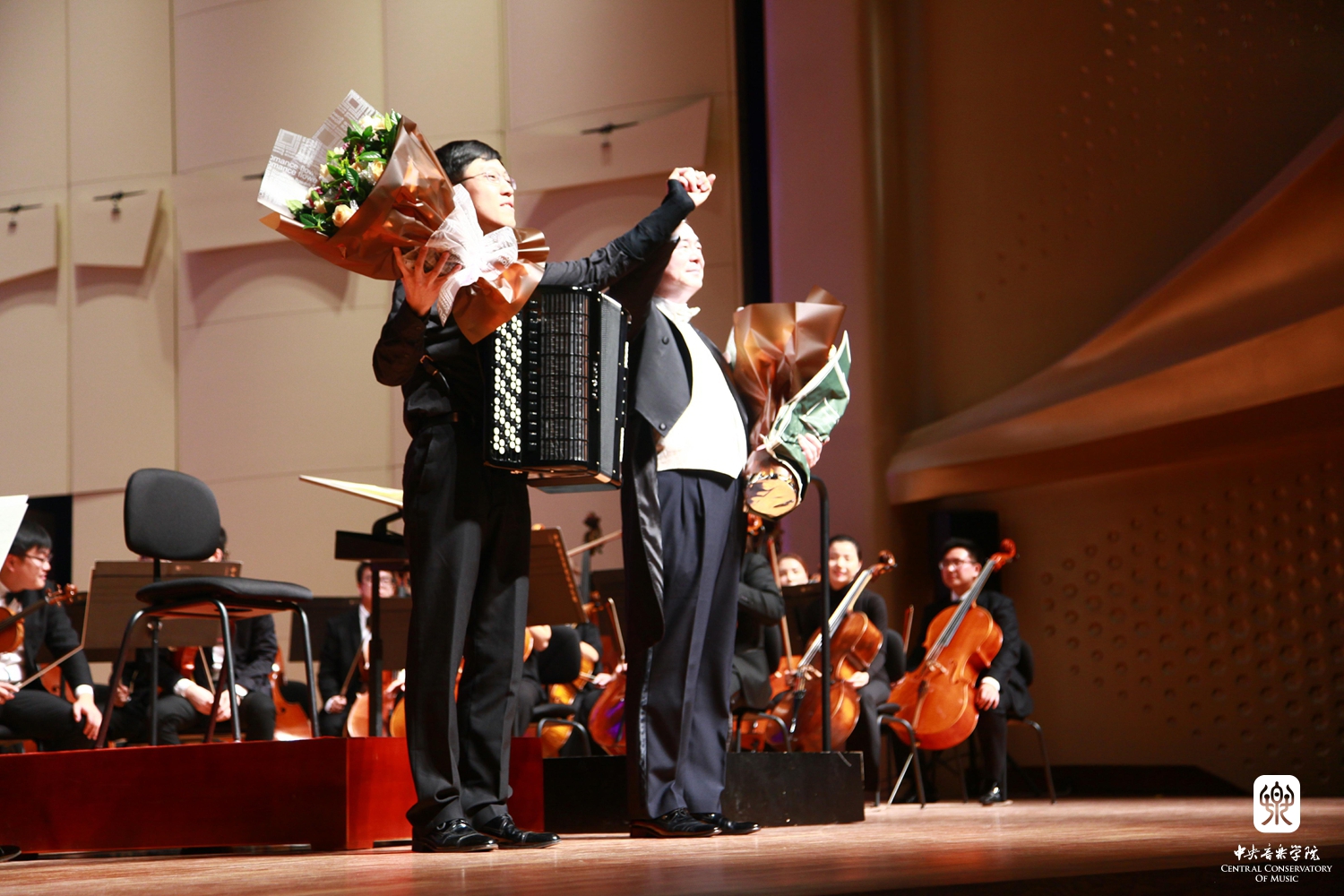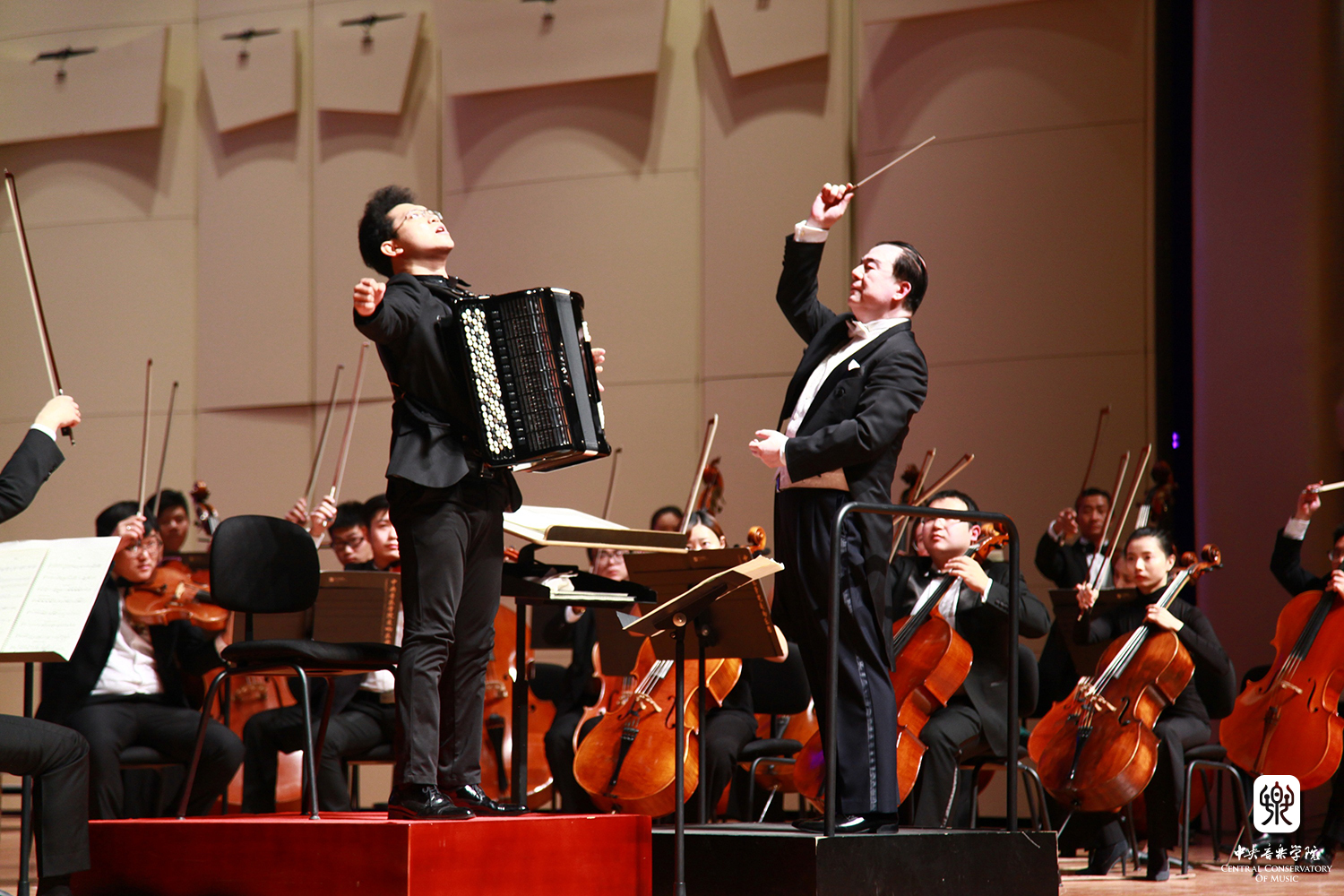 随后俞院长继续挥棒星空彩票ios版中心版交响乐团,与手风琴演奏者毛俊澔交相辉映,一气呵成波德盖茨的协奏曲。再现克林根塔尔国际手风琴大赛冠军艺术家的风采。