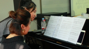 9月开学伊始,百余部带着温度和感情的歌词作品如潮水般涌来,投稿者从学生到老师,从业务骨干到行政干部,从在职员工到离退休老同志,大家对征集活动的积极响应和热情投入令人倍感欢欣鼓舞。之后由俞峰院长亲自挂帅,与党委副书记苗建华研究员、作曲系副主任秦文琛教授、作曲系唐建平教授;音乐学系主任安平教授以及院长办公室主任赵海组成的歌词评审小组决定将全部投稿作品分成两类面向师生,直接进入歌曲征集活动阶段。校领导动员作曲系,由作曲系主任郭文景教授和副主任秦文琛教授集合最强作曲家阵容对征集到的80余首歌曲创作作品进行两轮评审,并聚焦在15首艺术性强、易于传唱的歌曲,同时组织师生对这些作品进行修改和配器,为下一步的作品展示积极准备。