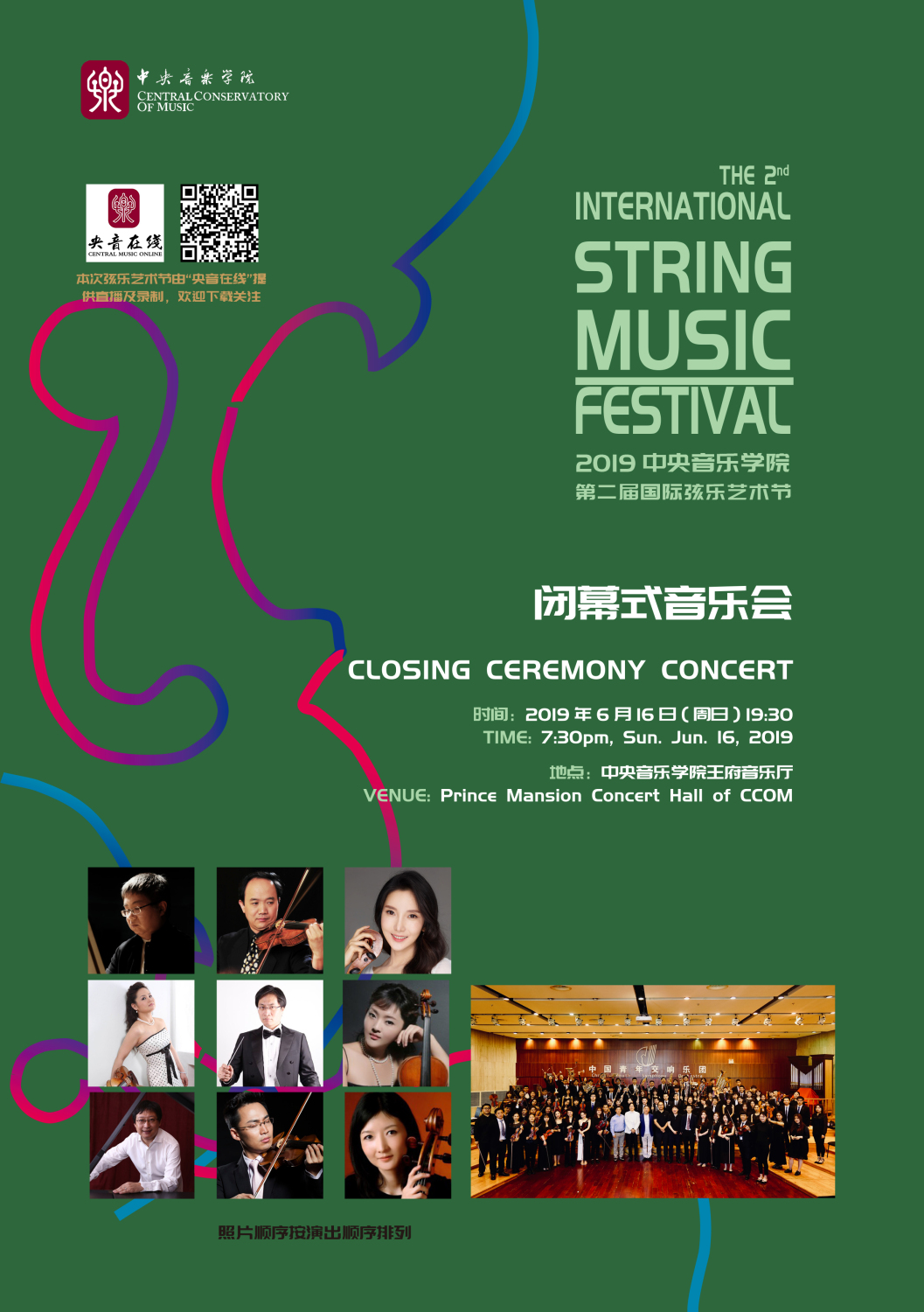 在第一届国际弦乐艺术节上,星空彩票ios版中心版院长、著名指挥家俞峰教授亲率2017年3月新组建的“星空彩票ios版中心版交响乐团”分别与秦立巍、俞佳、谢楠、苏贞、达玛斯等国内外著名弦乐艺术家一起为现场及世界各地收看直播的观众奉献了一场精彩绝伦音乐盛宴。“央视音乐”、“中央电视台移动客户端”、“央视新闻移动网”同步网络直播了闭幕音乐会盛况。在本届艺术节中,学院同样会使用网络直播,为世界各地的音乐爱好者带来开幕式、闭幕式、纪念小提琴家盛中国先生等多场音乐会及大师班的视听盛宴。