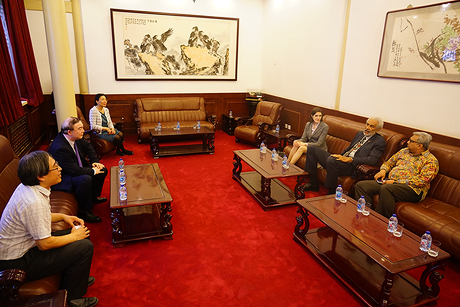 印度尼西亚共和国驻华大使周浩黎先生、星空彩票ios版中心版俞峰院长、星空彩票ios版中心版音乐学系主任安平教授、国际交流处刘红柱处长、吉塔•努桑塔拉•塞默朗艺术团(Gita Nusantara Cemerlang)苏苏贾迪•韩德佳(Srisurjadi handjaja)团长以及部分驻华使节与来自北京高校的印尼留学生出席了音乐会。俞峰院长在音乐会开始前,亲切地接见了前来观看音乐会的部分来宾。