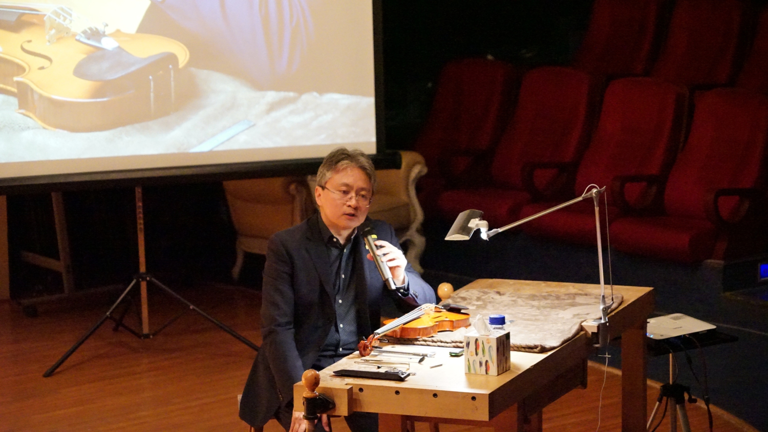 讲座最后,管弦系同学呈上自己的提琴,由中心的青年学生现场诊断。学生们的诊断与评说全面有序,精准到位,迎来了阵阵掌声,令受诊者受益匪浅。