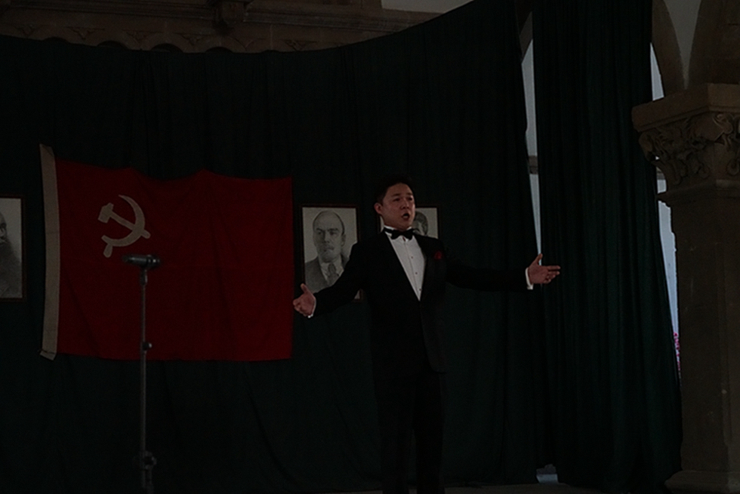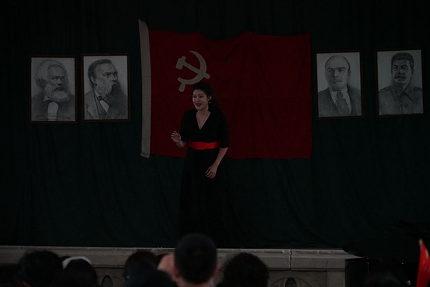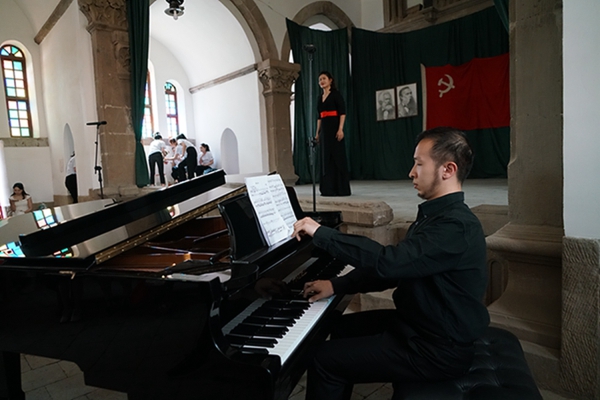 之后是1945年诞生在延安鲁艺的我国第一部民族新歌剧《白毛女》三个选曲:《十里风雪》(王珠峰演唱)《北风吹》(陈晓鸥演唱)、《扎红头绳》(陈晓鸥、王珠峰演唱,钢琴艺术指导李穆)。这部扎根中国大地的革命经典歌剧由延安鲁迅艺术学院集体创作。70余年前正是在这个教堂内排练,在延安中央大礼堂首演的。今天能站在这个舞台上再次唱响《白毛女》意义非凡。