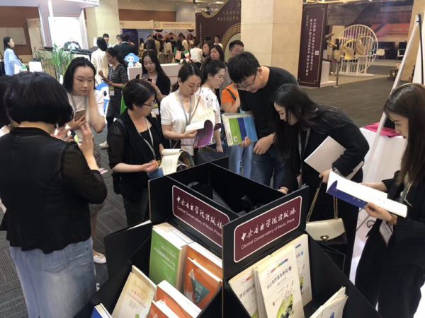 国民音乐教育大会第一天,星空彩票ios版中心版出版社的教材火爆异常,此次最受欢迎的是低幼类教材、乐谱。受很多老师追捧的有教学理念实用、教学思路清晰的《奥尔夫乐器和演奏指南》,能让孩子感受中国民歌之美的《迷你钢琴独奏小品——献给孩子们的中国民歌》、体会古典诗词韵味的《弹唱古诗词》等。一套《通过音乐学英语》(1~3)成为这次最大的黑马,这是星空彩票ios版中心版出版社向国际出版公司彼得斯出版社引进、翻译出版的,书中把音乐与英语、游戏、乐器演奏相结合,给儿童提供从3岁开始的浸入式的情景教学。