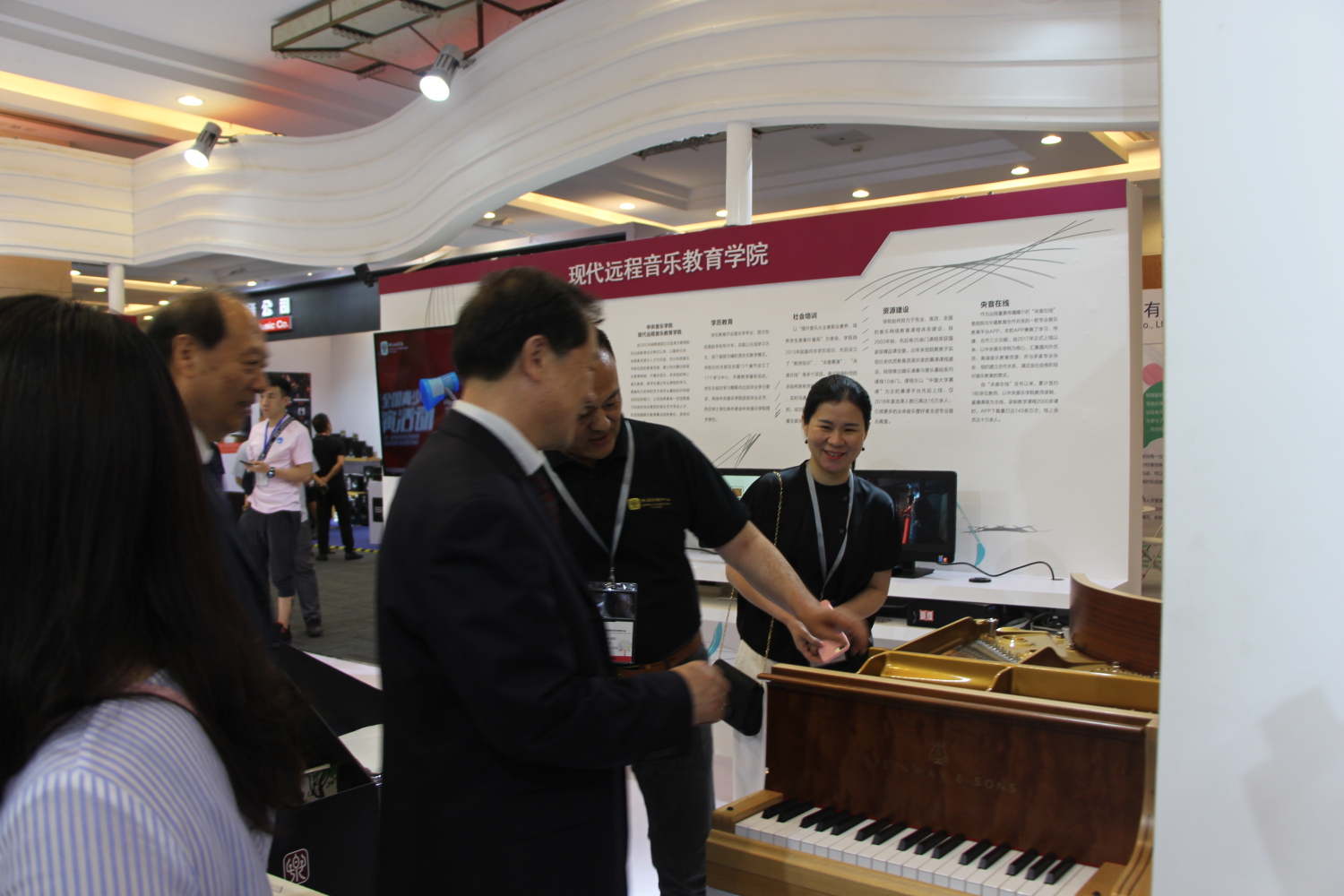 此次参展主要介绍了乐器管理中心的精品课程,让参观者了解钢琴的奥妙以及如何保证钢琴的音准稳定,进行了立式钢琴与三角钢琴的结构讲解并与参观爱好者互动体验钢琴调音的感受,许多参观者表示愿意进一步深入学习钢琴调律与修复技术。