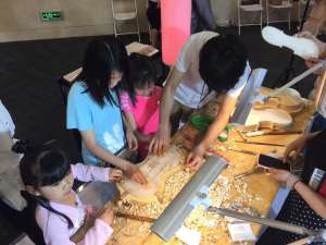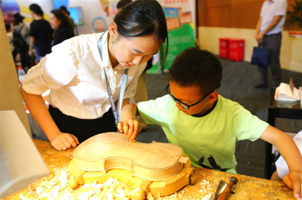 提琴制作专业附中学生指导小朋友实操
