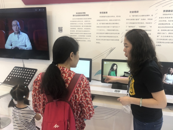 现代远程音乐教育学院本次展台上主要对学历教育、社会培训、央音展演、央音在线、资源建设这几项进行推介介绍。恰逢周末,关注并前来展台咨询的人络绎不绝,其中线上课程不仅有央音在线APP,还有制作的在中国大学慕课网上的课程,都能让用户不再受年龄、身份、地域等限制,让名师教学惠及更多人群,真正切实有效的提升学生的专业水准满足社会各阶段对音乐教育的需求,现代远程音乐教育学院将真正做音乐普及教育的践行者,并为之不断努力。