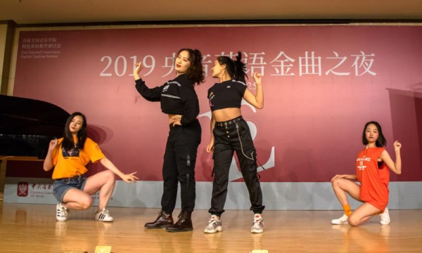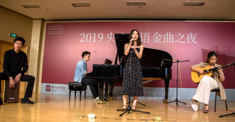 25日晚上19点,作为本次研讨会的有机延伸,“2019央音英语金曲之夜”于教学楼701拉开序幕,活动由何宽钊副教授主持,英语金曲之夜的主题是“让英语插上音乐的翅膀,让英语插上情感的翅膀”。来自星空彩票ios版中心版各院系的学生一展歌喉,用英语演唱了16首美妙的英文歌曲,由音乐学系系主任安平教授领衔的金嗓子奖评委团队和由各参会英语老师组成的语音评委团对选手进行了点评与打分。经过激烈角逐,来自音教学院和民乐系的本科生敖斯卡乐、乌日力嘎、阿丽玛、苏日古嘎组合以一曲Amazing Grace获得金嗓子奖冠军,这对组合还同时获得了最佳组合奖。声乐歌剧系本科生黄霄云以If I Were a Boy获得金嗓子奖亚军,由各系本科生混合组编的焦扬、曲雪瑞、孙婧、张泷予、刘少宇、陈兆天、宋炬组成的央音阿卡社ZING人声乐团以Can’t Help Falling in Love获得金嗓子奖季军。钢琴系本科生段怡婷凭借清晰准确的发音,以一曲Rather Be获得歌唱语音奖冠军,段怡婷还获得由现场观众投票产生的最佳人气奖。声乐歌剧系硕士研究生王皓光以Yesterday Once More获得歌唱语音奖亚军,音乐学本科生焦扬以Imagine获得季军。特别值得一提的是,管弦系本科生安逸达演唱的My Second Self由人文学部青年英语教师姚松圻作词作曲并编配,乐曲的创作和演唱均体现了很高水准,由人文学部青年教师周怡组织的街舞组合在中场休息时的精彩表演将现场气氛推向高潮。活动在欢乐、轻松的气氛中圆满结束。