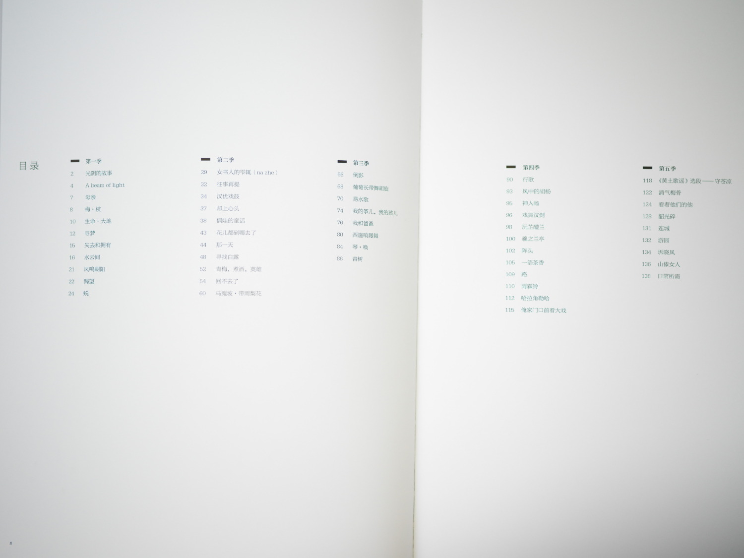 画册全书按照时间顺序设计排版,包含了“音舞集”第一季至第六季的170多张精美舞台照,目录则详细列举了6年来“音舞集”演出的所有作品。画册中的照片附有作品名称、创作者、参演者等说明,不仅是很好的资料集萃,更是一本值得欣赏、收藏的精美画册。《音舞集(2013~2018)》是对前六季“音舞集”的总结,同时也为第七季“音舞集”拉开了序幕。