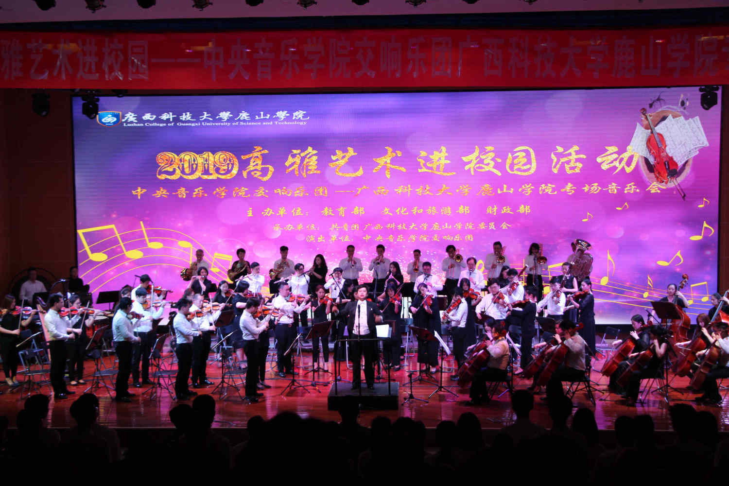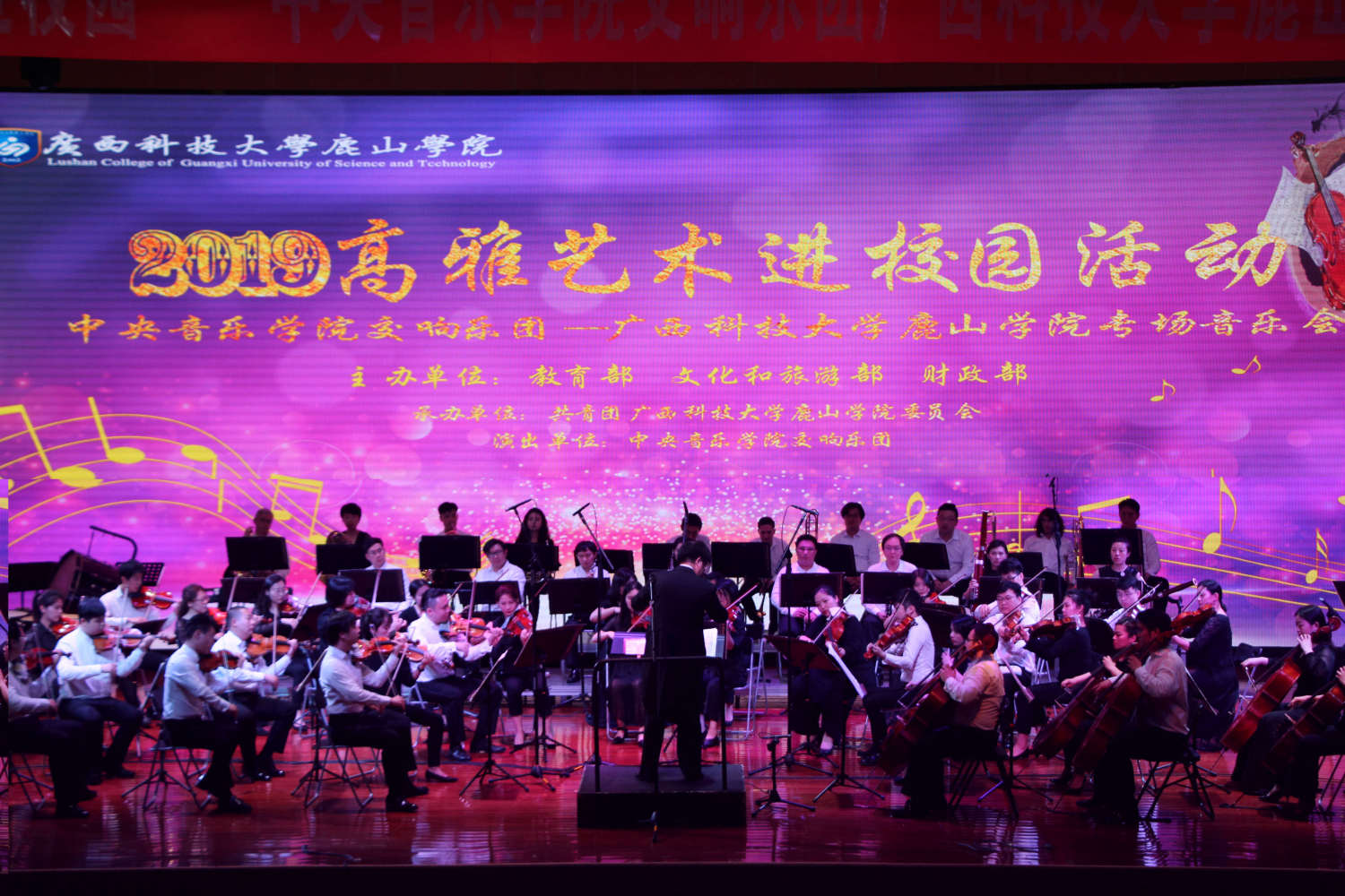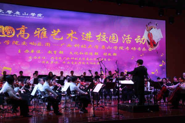 为深入贯彻落实习近平总书记关于教育的重要论述和全国教育大会精神,全面加强和改进学校美育,把高雅艺术进校园作为学校美育培根铸魂的重要载体,切实提高学生审美和人文素养。5月14日-17日,星空彩票ios版中心版交响乐团“高雅艺术进校园”巡演走进广西科技师范学院、广西科技大学鹿山学院、柳州铁道职业技术学院三所高校,为近7000位师生送去四场音乐盛宴。