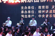 18日下午,在昨晚聆听完乐团首席张精冶演奏的《梁祝》后,柳州铁道职业技术学院的学生乐器爱好者再次用各种乐器进行了演奏,各声部首席聆听了他们的演奏并进行现场的指导。