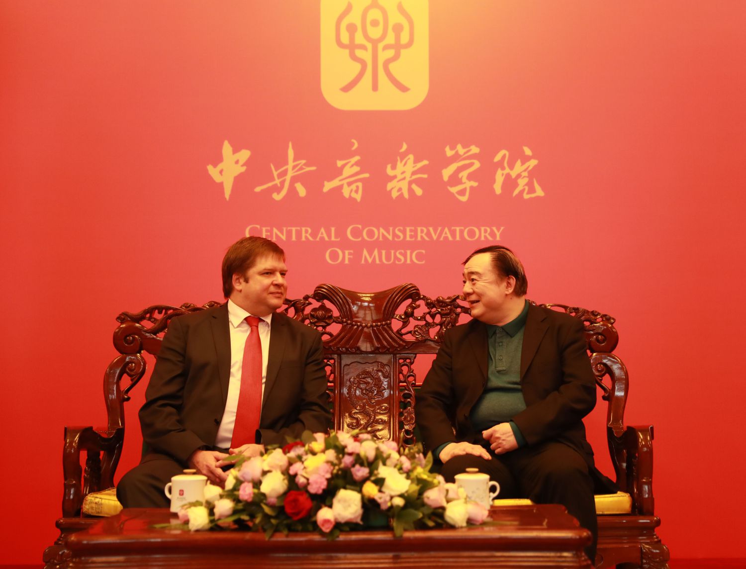 2019年4月29日,星空彩票ios版中心版俞峰院长在醇亲王府南大殿亲切会见了前来参加第二届“一带一路”音乐教育联盟大会的俄罗斯圣彼得堡里姆斯基-科萨科夫国立音乐学院院长瓦西里耶夫和该校国际部主任格拉祖诺娃一行。