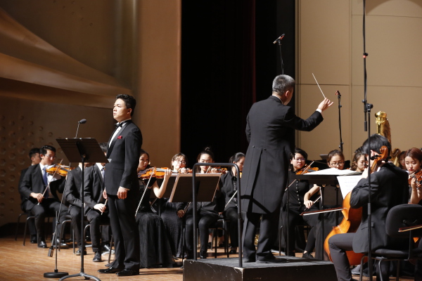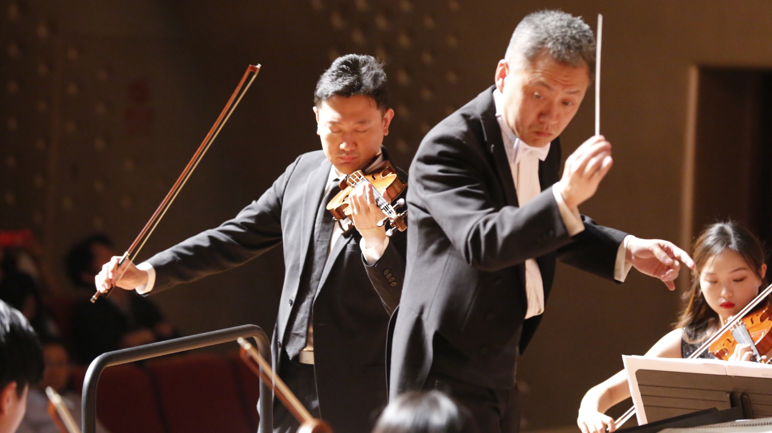 本场音乐会,由著名指挥家、我校指挥系教授林涛执棒管弦系中国青年交响乐团。林涛教授的指挥或激情洋溢或细腻绵长,动作干净、精准,大开大合而又收放有度,尽显儒雅风范和学者风度。而陈曦、章红艳、谭小棠、王传越、王威等各系名师名家的倾情加盟,则使得整场演出更加熠熠生辉。