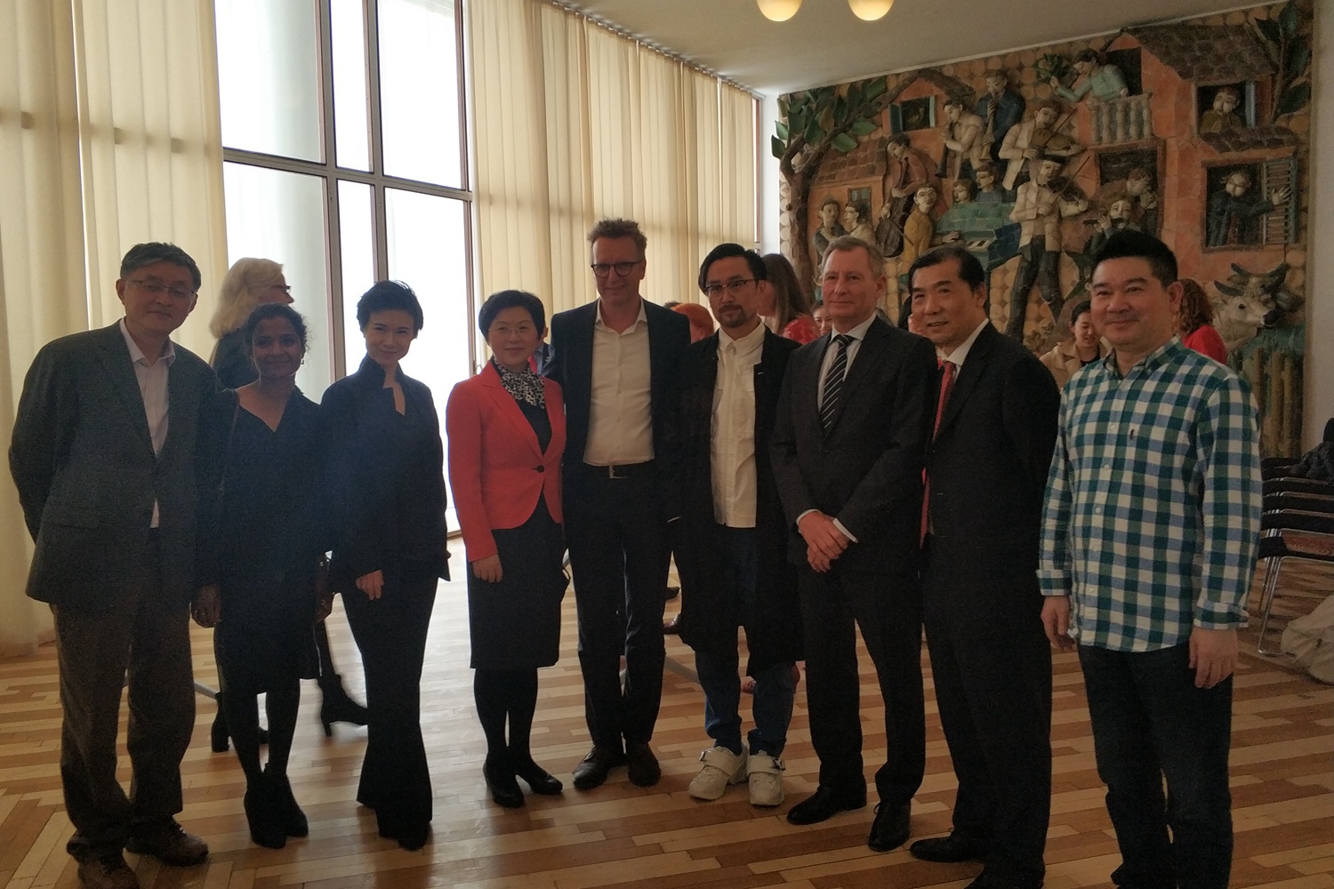 MCI院长李昕、Marianne Løkke J、指挥家陈琳、成都大熊猫繁育研究基地主任侯蓉、哥本哈根爱乐CEO-Uffe Savery、作曲家张帅、哥本哈根动物园董事会主席霍伍兹、中国驻丹使馆文化参赞刘东、笛子演奏家戴亚