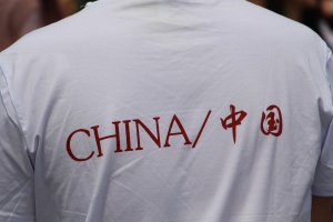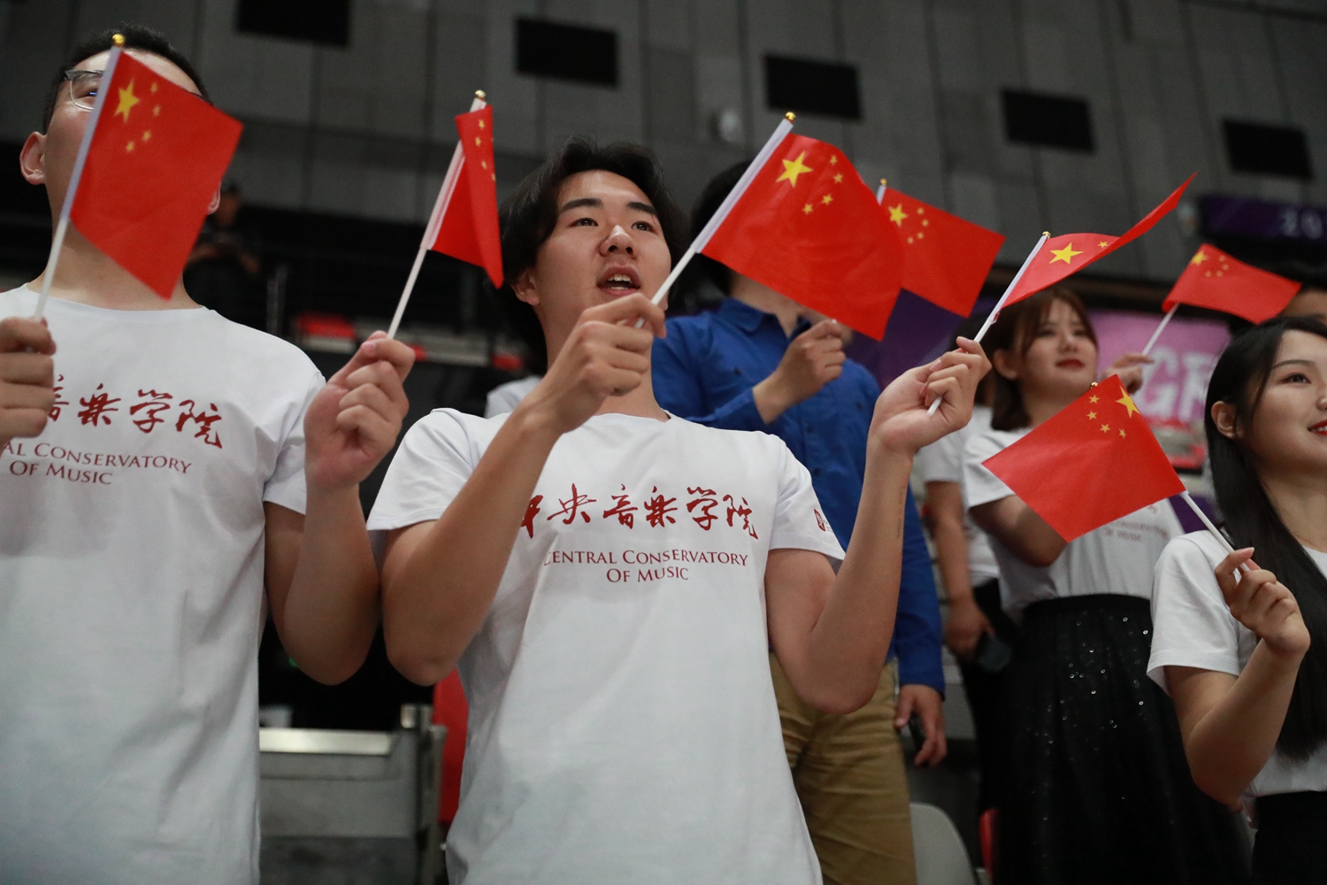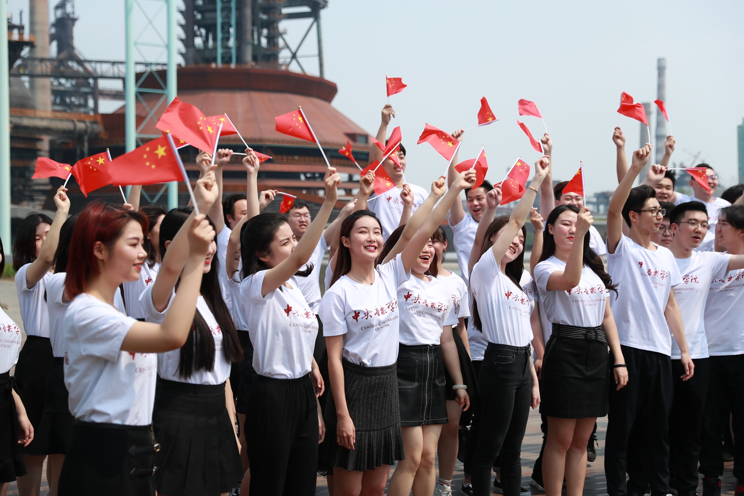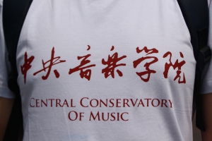 T恤上的红色字体,昭示着着中国共产党人的热血;T恤背后的CHINA向世界证明了我们央音学子对祖国的热爱!