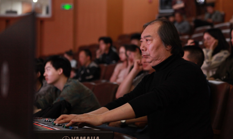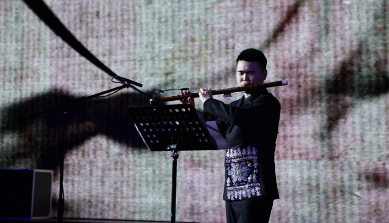 最后一首《诺日朗》是张小夫教授的代表作品,这部作品可谓本场演出画龙点睛之作,整部作品在全新的演绎下,将哲学与佛教、电子与器乐、传统与现代结合的天衣无缝,作曲家张小夫将“转经”和“轮回”这两个概念转化、提炼为作品当中一种独特的、个性化的电子音乐表达语汇,就像是循环式的音响动机。在数字影像的烘托下,共同营造出神秘深邃的音乐语境和人神对话的“虚拟空间”。这一场穿越时空,跨越界限的对话,让现场观众再一次感受到电子音乐带来的无限震撼。
