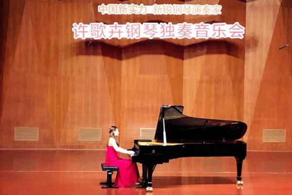 25日晚,第一位出演的是我校青年钢琴教师许歌卉,演奏了《巴赫帕蒂塔C小调第二首》、《李斯特改编舒伯特艺术歌曲鳟鱼、魔王》《李斯特匈牙利狂想曲第二首》《舒曼阿贝格变奏曲》《阿尔贝尼兹 特利安那》《拉威尔 夜之幽灵 》六首经典曲目,赢得在场观众热烈掌声。