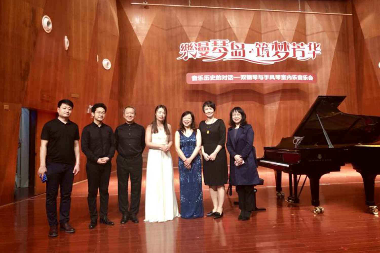 左起鼓浪屿钢琴学校钢琴学科主任汪洋老师、我校许笑男教师、张志玮副教授、许歌卉教师、陈曼春教授、