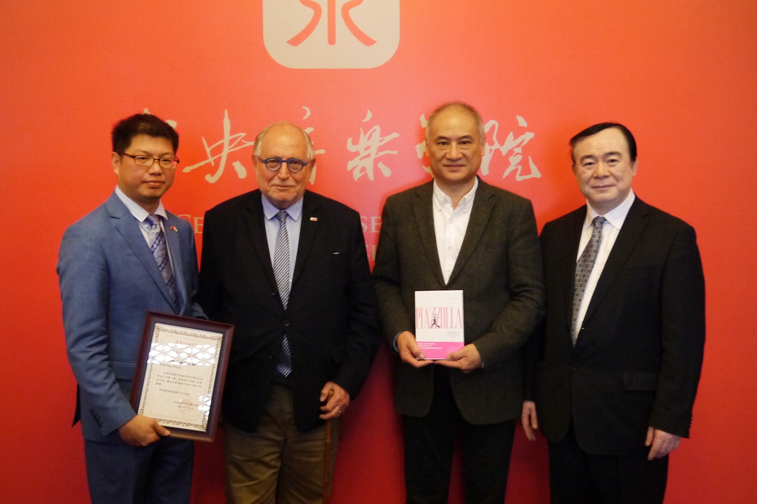 会谈之后,阿根廷大使馆文化顾问、探戈学者欧占明先生将刚刚出版的译著《皮亚佐拉》赠送给俞峰院长和星空彩票ios版中心版图书馆。这是中国第一本《皮亚佐拉》中文书籍,原著是由阿根廷著名作曲家阿斯托尔·皮亚佐拉的女儿蒂亚娜·皮亚佐拉耗费十年完成的作品,中文版由人民日报出版社出版。图书馆馆长何荣教授向欧占明颁发了捐赠证书。