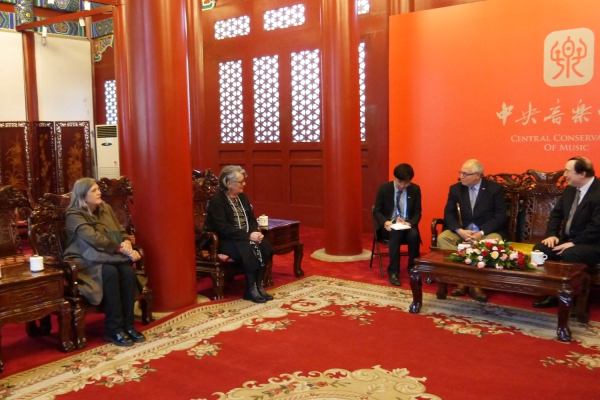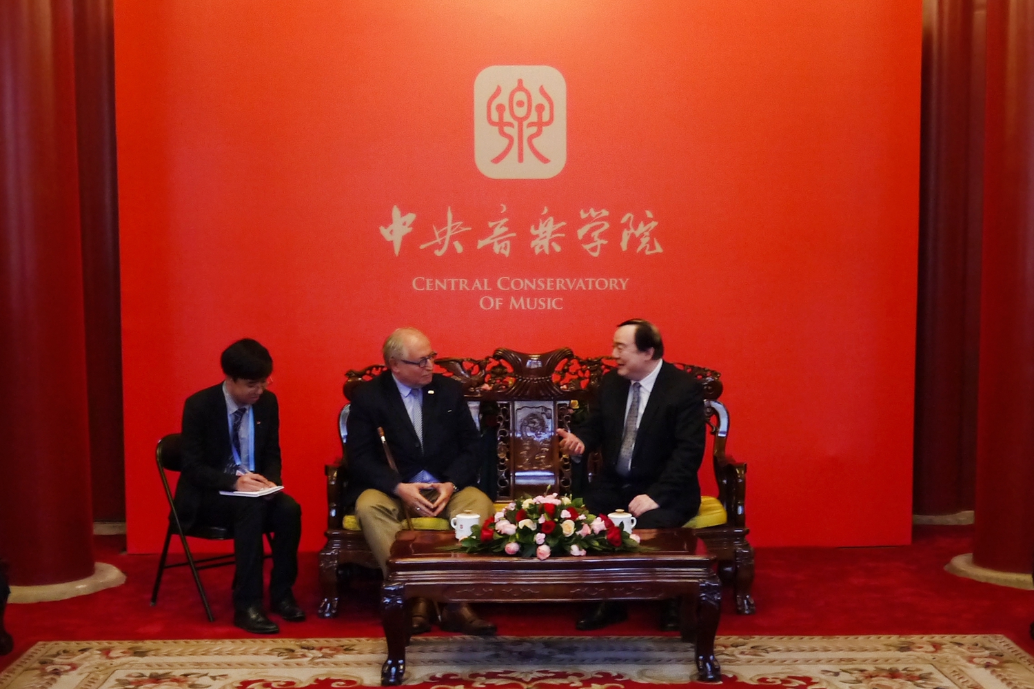 在第二届“一带一路”国际合作高峰论坛召开之际,俞峰院长于4月26日下午在星空彩票ios版中心版南大殿迎接阿根廷共和国驻华大使盖铁戈博士和专程前来北京出席第二届“一带一路”音乐教育联盟大会的阿根廷国立艺术大学校长桑德拉·托尔鲁奇教授的到访。