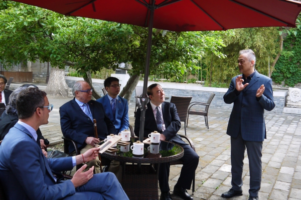 此外,俞峰院长还与阿根廷贵宾在原清朝醇王府光绪皇帝出生地品茶听曲,聆听了乐器中心赵东升老师讲述古琴的悠久历史,欣赏了青年演奏家吴雪盟为来宾演奏的《高山流水》和《梅花三弄》两首最具代表中国古老音乐文化的经典作品。