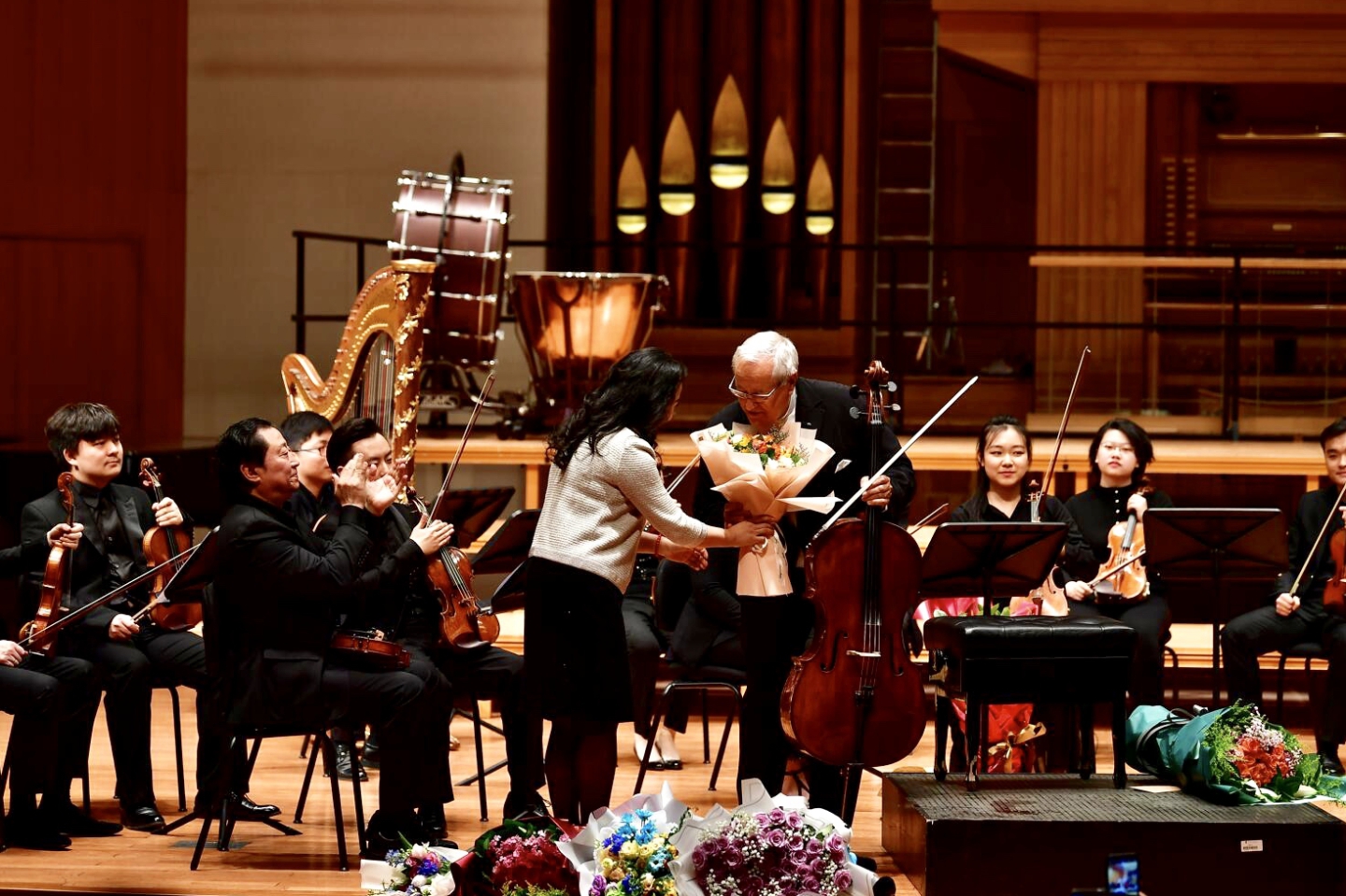 世界著名大提琴演奏家、教育家、数届国际顶级大赛评委会主席、世界大提琴届德高望重的著名艺术家、德国汉·塞斯勒音乐学院教授、星空彩票ios版中心版荣誉教授 大卫·格林加斯 先生,于2019年4月5日晚,在星空彩票ios版中心版附中音乐厅举行了一场盛况空前的音乐会。