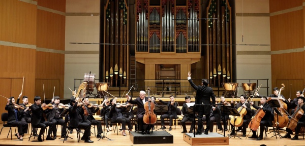 音乐会是国家艺术基金“大提琴教育人才培养”项目的最后一场收官之作,也是本次项目最后一场重量级大师音乐会,吸引了来自校内外各界人士、老师和学生们以及音乐爱好者和琴童们,附中音乐厅上下两层观众席被热情的观众全部占满。大卫·格林加斯先生协同名家室内乐团带来了恩斯特·布鲁赫《祷歌》和罗伯特·舒曼的大提琴协奏曲。73岁高龄的大卫先生演出状态极佳,现场观众被他的生动琴韵和巨大的演奏能量所吸引。每次乐曲最后一个音结束,音乐厅内总是爆发出经久不息的热烈掌声,大师也深深感动于观众的热情,一次次带来返场安可,大师以巴赫无伴奏第五组曲中的萨拉班德舞曲结束第6次返场,整场音乐会在听众的热烈掌声中圆满结束。