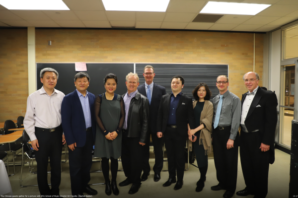 其后的几十年间,BYU代表团又陆续35次访华,从一开始就与星空彩票ios版中心版开展了多次意义深远的互动和合作,如:1979年3月,时任院长James Mason作为正式受邀访华的第一个美国文化代表团成员,他也是美国当时最大的音乐教育者组织的主席,在著名作曲家周文中先生的帮助下,同代表团其他成员一道访问了我校;1980年4月,在时任中国文化部长和文联副主席林默涵同志的组织率领下,我校赵沨院长等一行五人代表团对美国8个城市进行了为期四周的访问,BYU为中国贵宾献上了别具一格的音乐舞蹈表演;1980年以来,著名钢琴教育家周广仁先生应邀担任由BYU钢琴家Paul Pollei创办的Gina Bachauer国际钢琴比赛评委等。今年恰逢BYU首度访华四十周年纪念,五月下旬,BYU将率领8支表演团体、总共多达200余人的大型代表团再度访问北京、上海和西安。在这一系列被BYU誉为“壮观的省亲之旅”的重要访问中,BYU艺术与传播学院(College of Fine Arts and Communications)与我院的交流、合作、演出亦是其整个交流行程中的重要一驿。3月19至22日间,与BYU艺术与传播学院访问我校密切相关的、可视为其访华预热的系列学术交流活动已在美圆满完成,我校作曲系教授、音乐学研究所所长贾国平,指挥系林涛教授,民乐系兰维薇副教授以及作曲系青年教师代博一行在BYU举行了1场当代管弦乐作品音乐会、1场当代室内乐作品音乐会、3场学术讲座、3场工作坊以及针对BYU作曲和指挥专业学生的大师课若干等。中国音乐家的学术造诣和艺术高度引起在校师生同行的热烈反响。