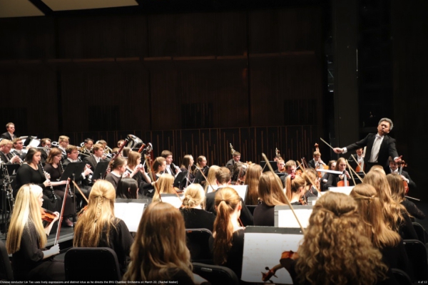 、贾国平教授的琵琶协奏曲《风越苍茫/The Wind Passing Through the Vast World》。乐团成员由BYU优秀本科生和研究生组成,其演奏技术和艺术修养颇高,并不乏全美最高音乐奖项获得者。为了高质量地实现四部新作的公演,Kory Katseanes教授带领乐团提前三个月进入排练,方得以最充分的准备迎接中国客人的到来。林涛教授指挥了代博老师的作品和Stephen Jones教授特别为此行而写的新作,Neil Thournock和贾国平教授的作品则由Kory Katseanes教授指挥,这也体现了主办方对于双边合作的特别用心。音乐会从作品质量到指挥演绎再到独奏家和乐团的舞台表现均引起观众热议,高度实现了主办者和参与者对此次艺术合作的价值期许。