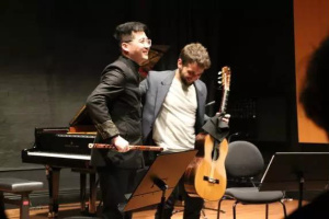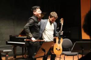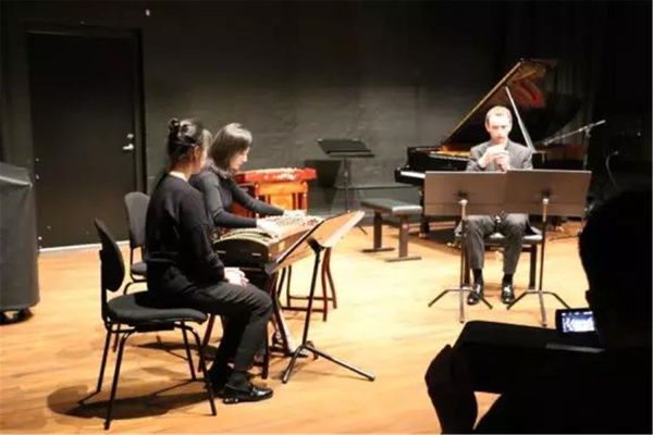 今年的“普萨”新音乐节中国作品专场音乐会于3月12日在丹麦皇家音乐学院New Hall成功举行。本次音乐会主题为“中国与西方的相遇”,要求中国作曲家为一件中国乐器和一件西方乐器创作一首二重奏作品。我校作曲系博士生卫铭睿的《叠放的空间》(扬琴、大提琴)、硕士生巩子晗的《穆野韶歌》(古筝、单簧管)、张静怡的《述怀》(琵琶、长笛)和王帆的《舌尖上的音符》(笛子、吉他)参演。