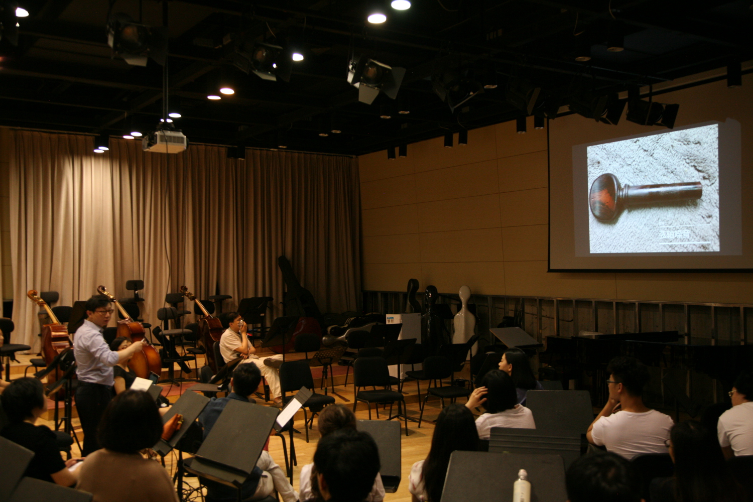 本次活动是对“产学研用”理念的有益尝试,是为了未来成立提琴修复中心的一次探索。活动首先由提琴制作研究中心副主任高彤彤老师为乐团的各位演奏人员讲述如何保养提琴、维护提琴的正常状态;如何减少日常使用过程中的损伤。