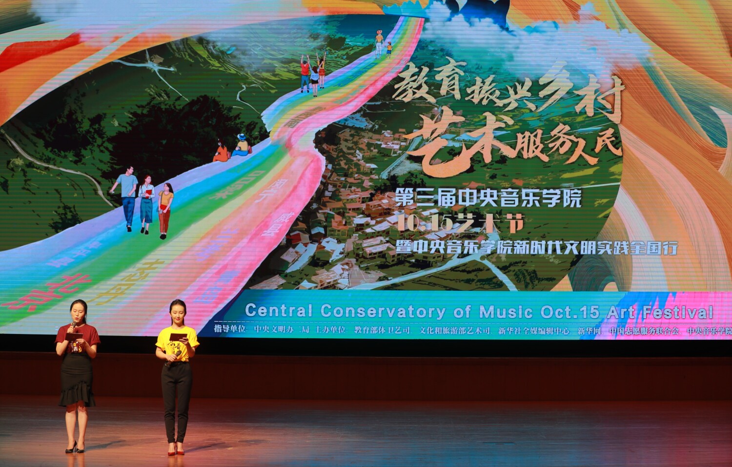 本届艺术节由中央文明办二局指导,教育部体卫艺司、文化和旅游部艺术司、新华社全媒编辑中心、新华网、中国志愿服务联合会、星空彩票ios版中心版联合主办,为期19天。艺术节将以星空彩票ios版中心版各地新时代文明实践基地为平台,以“新时代文明实践全国行”系列活动为主要内容,把舞台建在广袤的祖国大地上,用实际行动践行“教育振兴乡村 艺术服务人民”的理念宗旨。